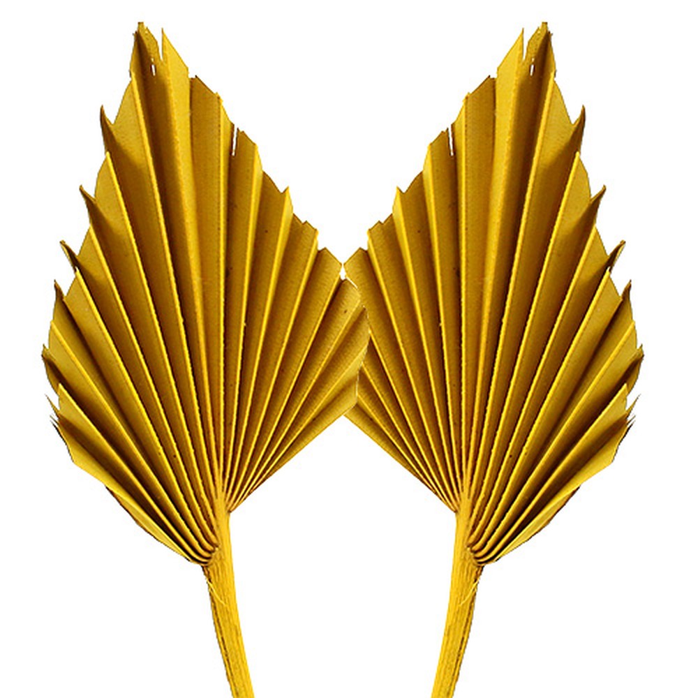 Complétez votre décoration funéraire grâce à ces élégantes feuilles de palmier jaunes appelées aussi palm spear ! Il s’agit d’un élément de décoration naturel qui se compose d’une véritable feuille de palmier coupée en forme de pique et formée de jolis plis tel un mini éventail. Avec la tige sur laquelle se dresse la feuille vous pourrez fixer cette dernière sans efforts dans un arrangement ou un bouquet de deuil.À l’approche de la Toussaint, vous profiterez de ces feuilles de palm spear pour élaborer de ravissants ensembles du souvenir. Elles conviennent tout autant aux arrangements de table et aux décorations murales et se marient très bien avec les feuilles de palmier d’autres couleurs, de la paille et un beau ruban hommage.
