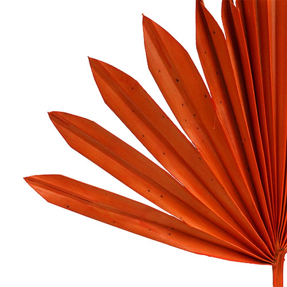 Accessoirisez les arrangements de deuil que vous proposez à vos clients avec ces mini feuilles de palmier soleil de couleur orange, cela leur donnera un cachet tout à fait unique ! Cette feuille est en fait une feuille de palmier qui a été séchée, teintée puis pliée en forme de soleil levant. Avec sa tige, cet article naturel pourra être inséré dans un bloc de mousse florale sèche dans lequel vous ajouterez d’autres plantes et matériaux issus de la nature pour obtenir une composition personnalisée et pleine de charme.Et pourquoi ne pas essayer de prendre plusieurs de ces feuilles pour en faire un set de table qui servira de support pour un arrangement ? Il est bien sûr également possible de n’utiliser que les têtes, par exemple pour les coller tout autour d’une décoration florale ou pour en faire de petits arrangements de deuil que vous proposerez à votre clientèle. Ces feuilles de palmier que l’on appelle aussi Palmspear s’entendront en outre à merveille avec des matériaux naturels blanchis, d’autres plantes exotiques et des proteas.