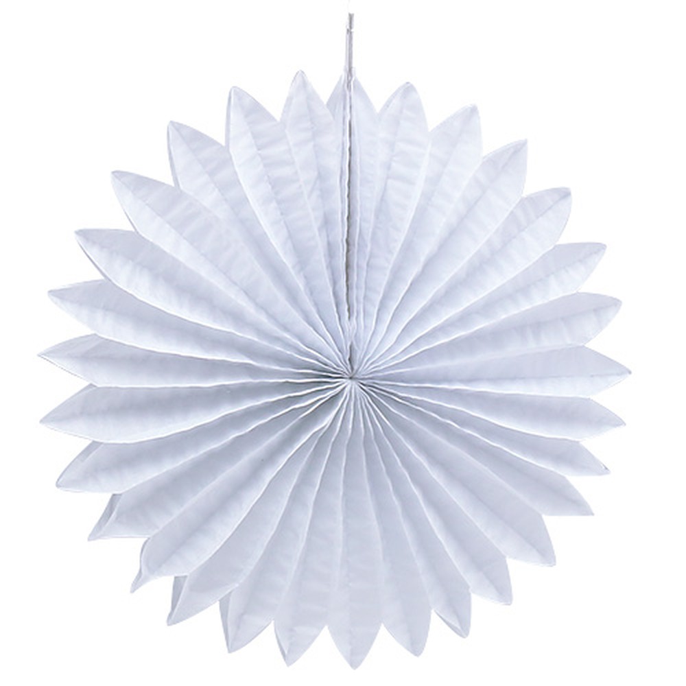 Ottieni la classica decorazione da festa per la tua festa e delizia i tuoi ospiti! Il fiore si piega facilmente a forma di sole o fiore. Per mantenere la forma, è sufficiente infilare il nastro bianco attraverso l'altra apertura di cartone e appenderlo. Quindi hai una fantastica idea deco per la tua festa di compleanno, la tua festa di nozze, per un anniversario o un'apertura di attività.E se ti piace colorato, puoi ancora dipingere il fiore di carta a piacimento o decorare con glitter, paillettes e stelle filanti. Pertanto, la decorazione del soffitto è anche molto buona come decorazione per il compleanno di un bambino, che farà ridere e allietare i più piccoli. È anche bello che dopo la festa, puoi semplicemente ripiegare la decorazione di carta e risparmiare spazio fino alla prossima festa!