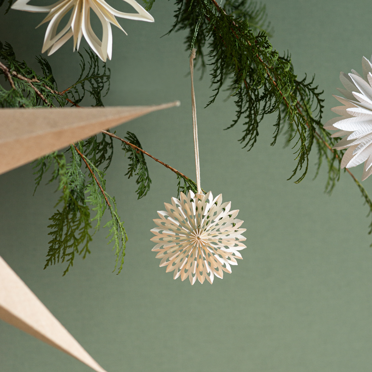 Festliche Eleganz mit dem weißen Papierstern als Baumschmuck