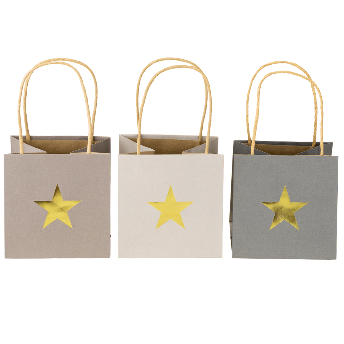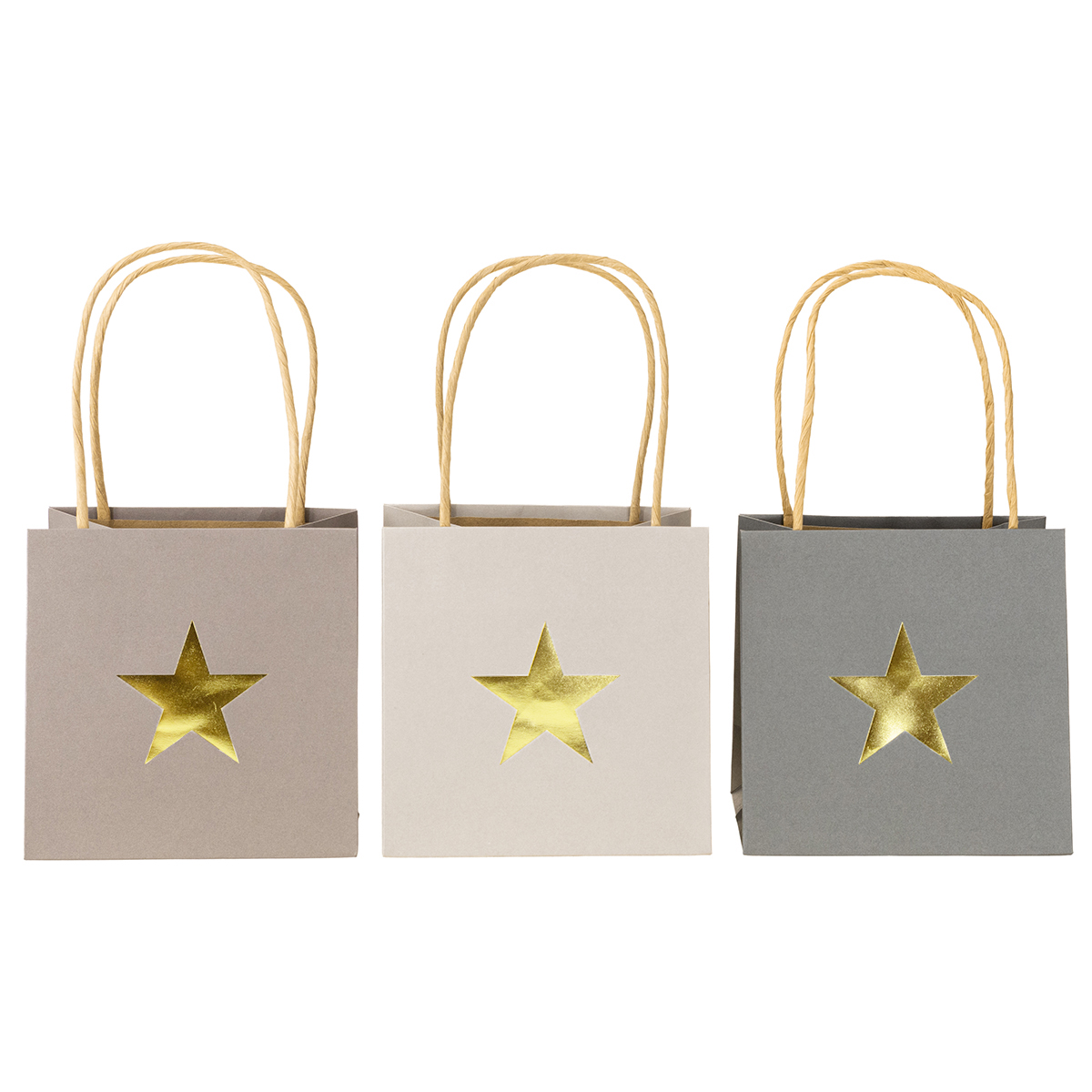Sie bekommen die kleinen Geschenktüten mit Stern sortiert in drei dezenten Grautönen.