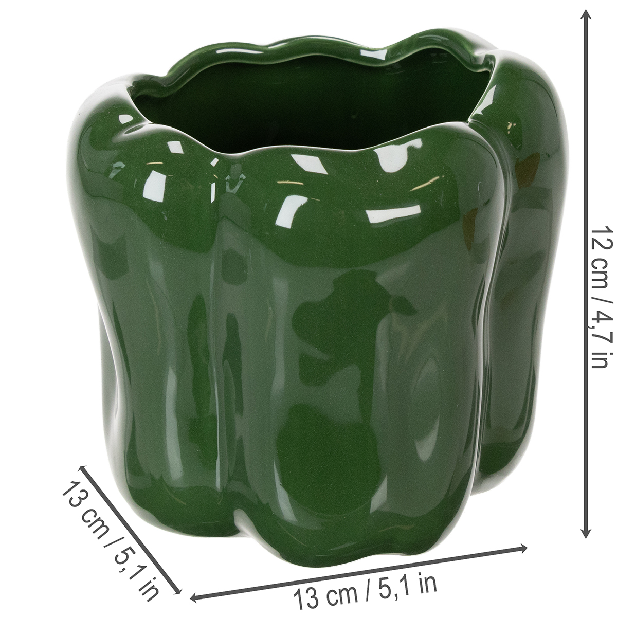 A volte sono i piccoli dettagli a completare una stanza. Questo vaso in ceramica per paprika è uno di quei dettagli affascinanti. Realizzato in ceramica di alta qualità e in un vivace rosso e verde, dona alla tua cucina un tocco moderno ma accogliente. Con un diametro di 13 cm e un'altezza di 12 cm, puoi sistemare al suo interno una varietà di piante, che si tratti di delicate piante grasse, erbe aromatiche fresche o fiori colorati. Ma attenzione: poiché i vasi potrebbero non essere impermeabili al 100%, è consigliabile rivestirli con un foglio di alluminio o utilizzare un sottovaso adatto.