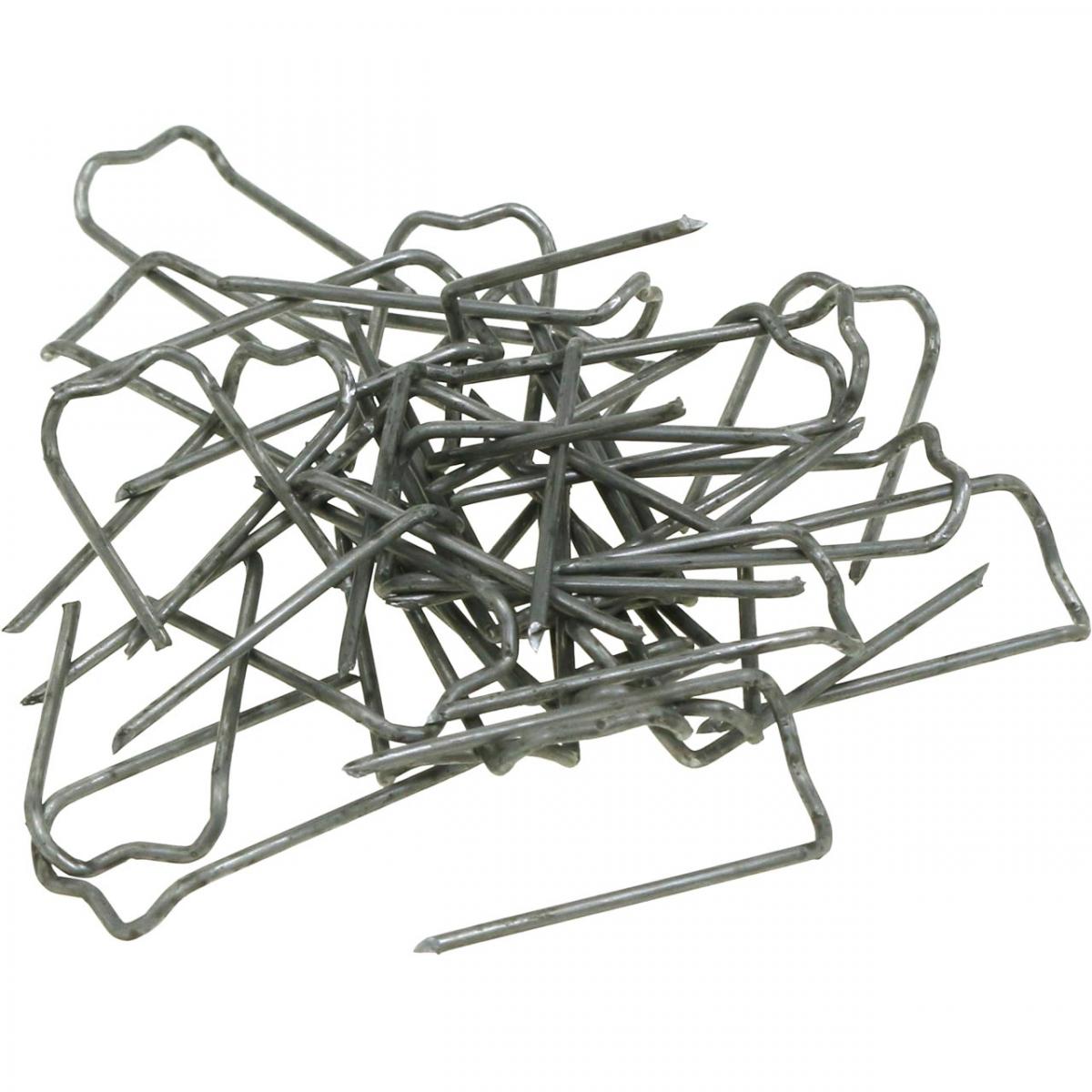 Die Patenthaften haben jeweils eine Breite von etwa 17 Millimetern und eine Länge von rund 25 Millimetern. Ein Paket enthält circa 2,5 Kilogramm der vielseitig einsetzbaren Drahtspangen. Da die Enden der Krampen angespitzt sind, können Sie diese leicht in die unterschiedlichsten Materialien und Kranzunterlagen einbringen.