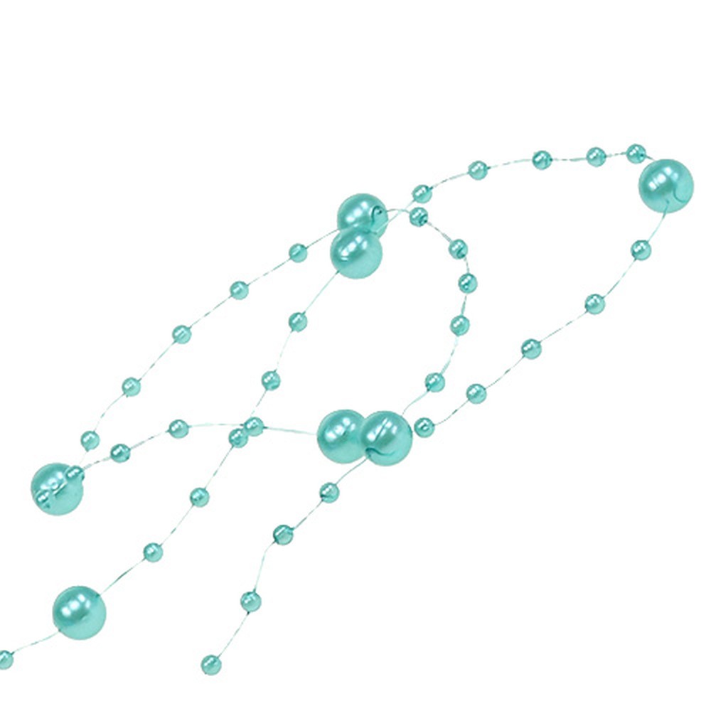 Si vous cherchez un joli collier moderne pour une décoration de table, alors jetez un coup d’œil sur ce ruban de perles turquoise ! Ce galon décoratif de qualité supérieure se compose d'un mince fil indéchirable sur lequel on a fixé des perles scintillantes fort élégantes de 2 tailles différentes. Vous pourrez ainsi embellir une table et arranger le ruban de manière créative, par exemple en le disposant en cercles ou en spirales.N'hésitez pas non plus à utiliser une belle nappe teintée pour créer un joli contraste de couleur avec ces perles sur ruban. Vous apporterez ainsi une touche festive à chaque décoration et vous pourrez également utiliser le collier de perles pour une fête de printemps ou encore pour une réception de mariage. Il vous sera aussi possible de l’enrouler de manière décorative autour d’un bouquet de fleurs mais aussi de n’utiliser que quelques petits tronçons du ruban décoratif comme ornement pour une coiffure ou encore pour confectionner des bijoux personnalisés !