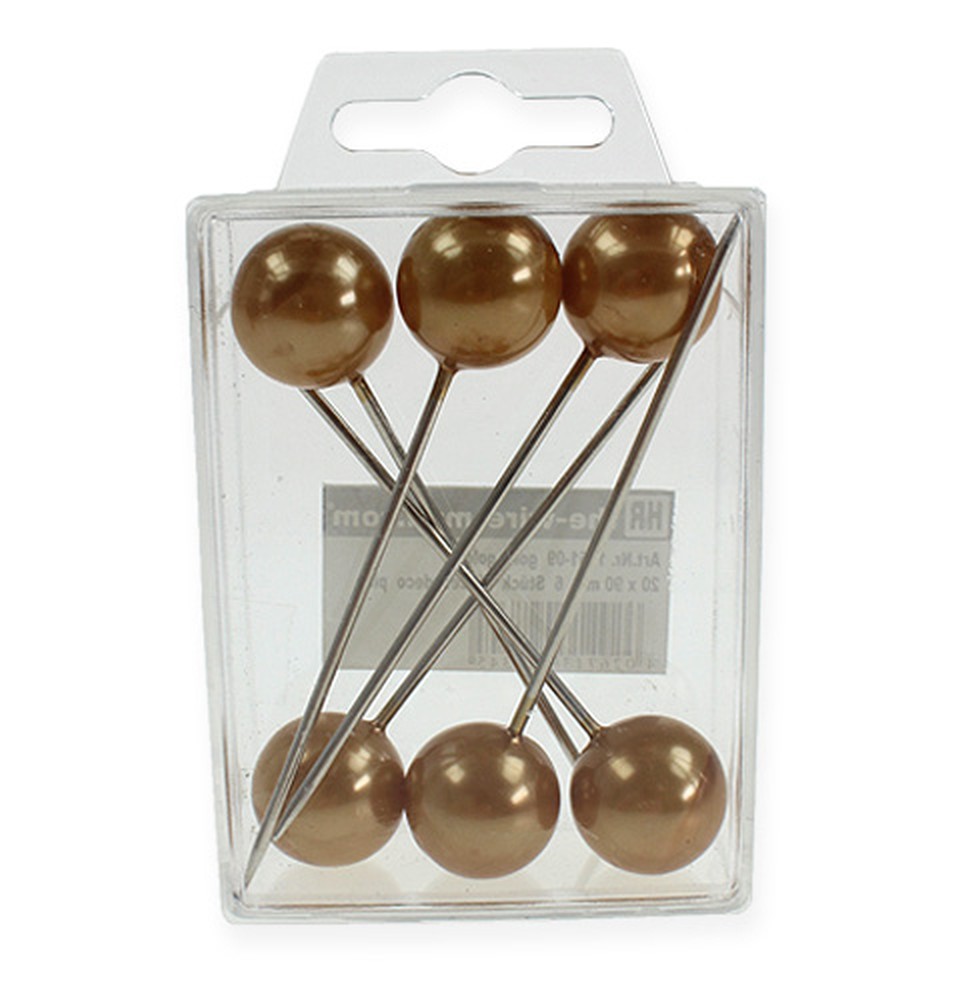 I 6 aghi perlati color oro e argento, che riceverai qui in una piccola scatola di plastica, sono lunghi circa 90 millimetri. Il diametro delle singole perle è di circa 20 millimetri.