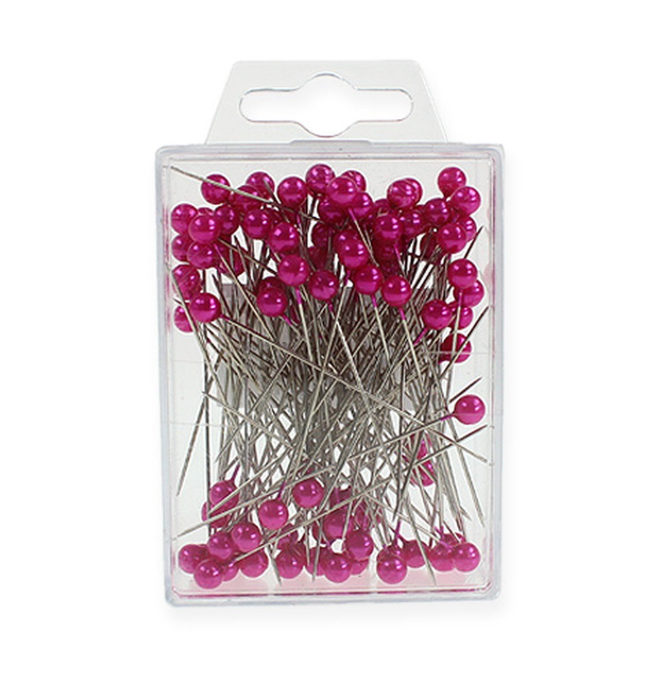 Les épingles à tête nacrée couleur rose fuchsia permettent d’assembler des pièces de tissus avant de les coudre, d’afficher des informations sur un tableau de liège et sont d’une grande utilité à la maison, au bureau et à la cuisine ou ils permettent de savoir si un gâteau est déjà cuit. Pour les fleuristes, ces épingles sont très pratiques pour l’emballage des plantes vertes et des bouquets.Diamètre de la tête : Ø 6 mm