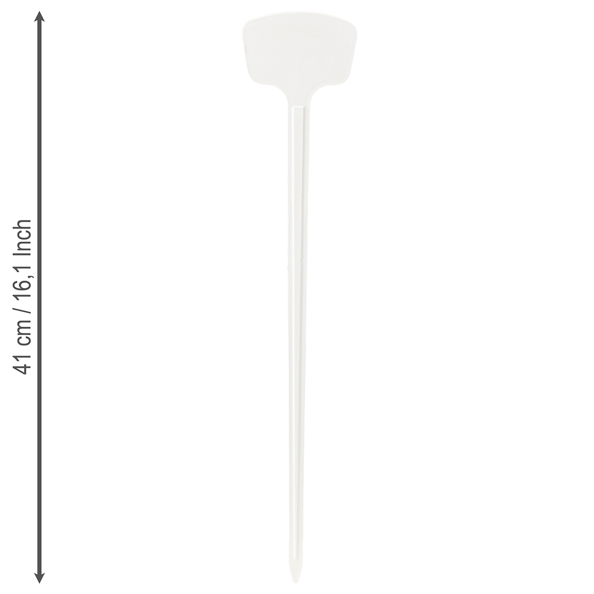 Insgesamt ist das Pflanzensteckschild circa 41 Zentimeter lang: Die Fläche zum Beschriften misst etwa 80 mal 50 Millimeter und die Stablänge beträgt rund 36 Zentimeter. Sie bekommen das Pflanzschild zum Stecken in einer Packung mit 10 Stück. Floristen benutzen die langstieligen Blumenstecker gerne bei der Preisauszeichnung: Einfach ein Preisetikett aufkleben und das Preisschild im passenden Blumeneimer oder Pflanzenkübel platzieren!