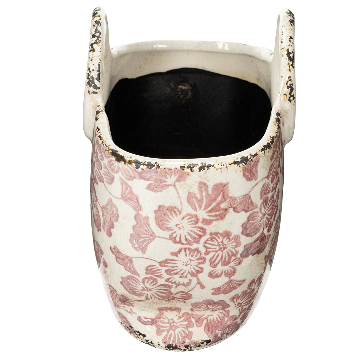 Vintage Pflanzentopf mit Henkel im floralen Design