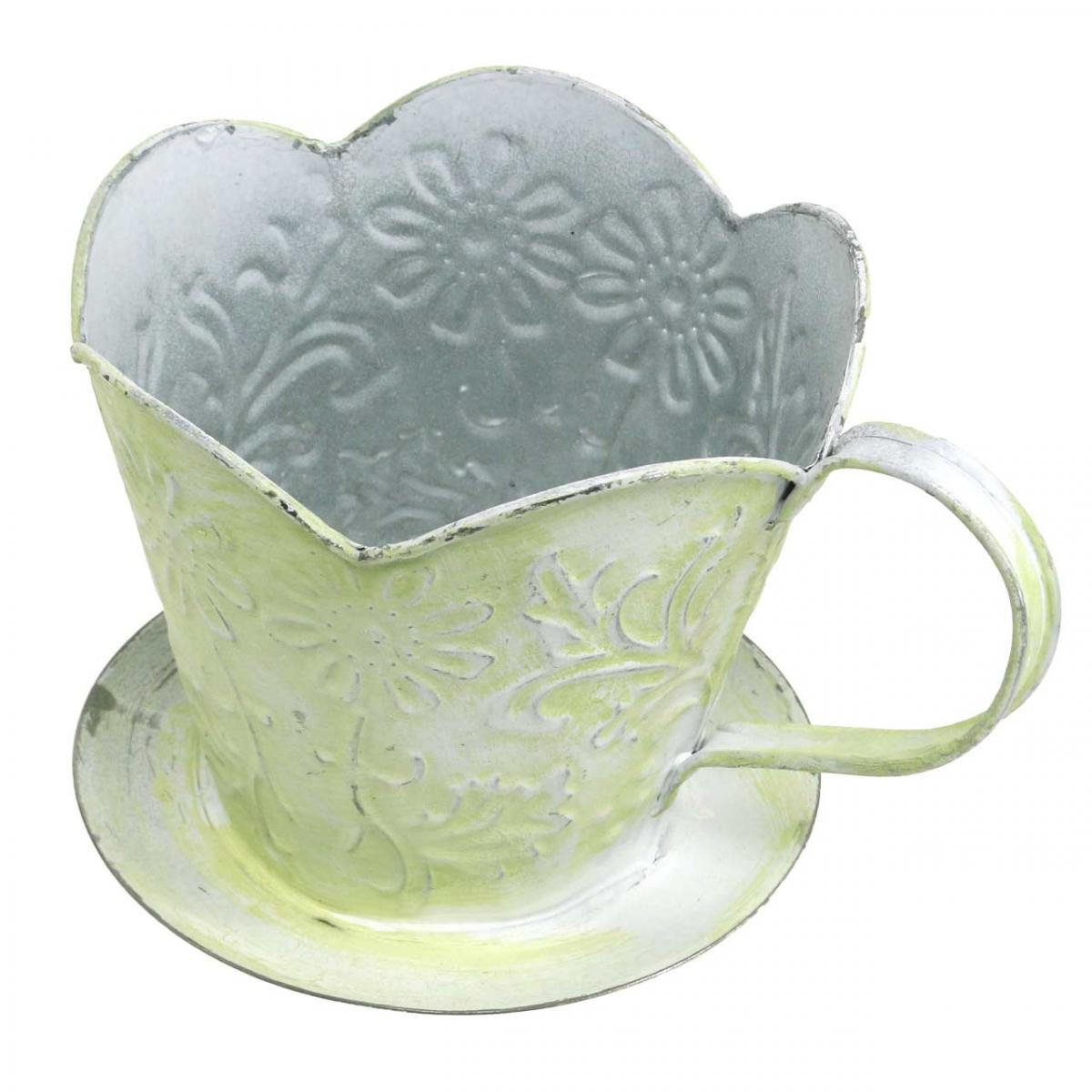 Fioriera, portafiltro caffè decorativo, tazza in metallo per piantare, decorazione floreale verde, bianco shabby chic H11cm Ø11cm