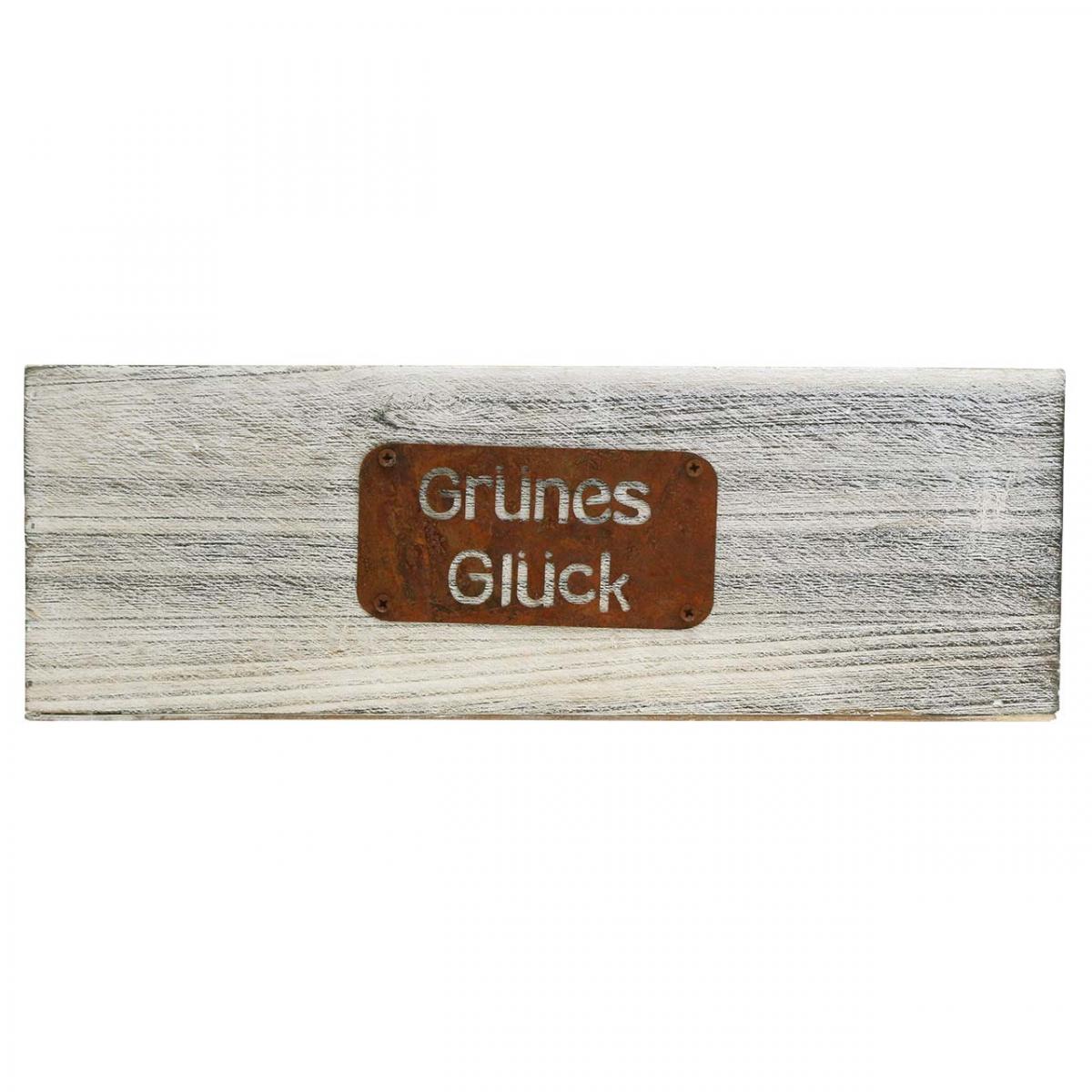 Pflanzgefäß “Grünes Glück”, Gartendeko, Holzdeko zum Bepflanzen Weiß gewaschen, Edelrost L35cm H12cm