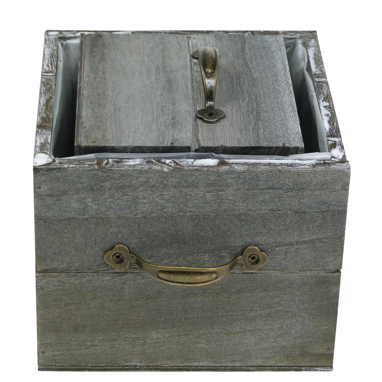 Pflanzgefäß Holzschublade Grau gewaschen 15×15cm/12×12cm 2er-Set