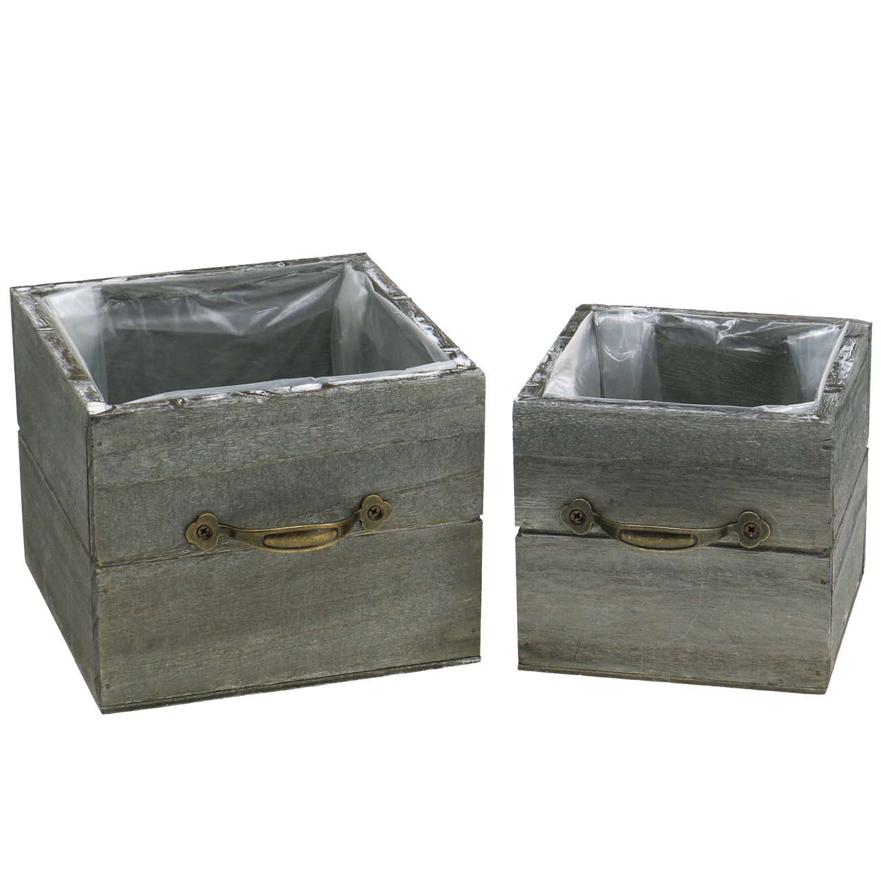Produktname: Pflanzgefäß Holzschublade Grau gewaschen 15×15cm/12×12cm 2er-Set