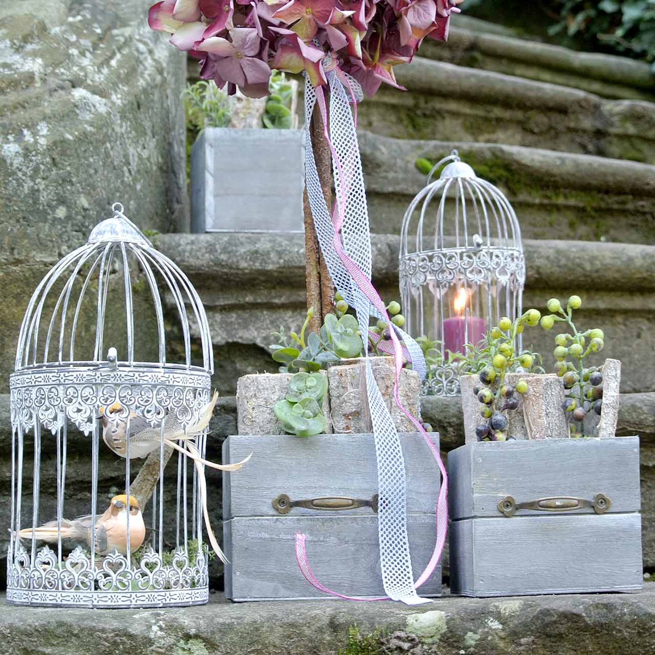 - Windlicht im Korb