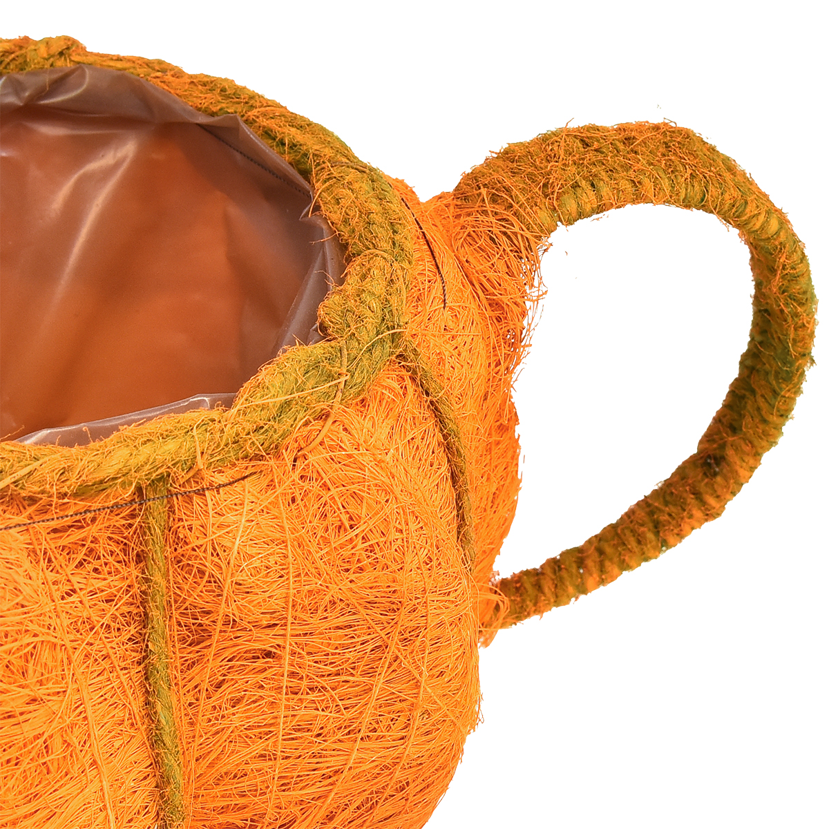 In den Dekokannen steckt unsichtbar und stabilisierend ein Metallgitter in Sternen-Form, das blickdicht mit feinen Sisalfasern in Orange umwickelt ist. Akzente setzen die Sisalkordeln in Grün, welche durch den Orangeton gelbgrün erscheinen. Die Pflanzkanne ist nur optisch ein Highlight, sondern auch in ihrer Vielseitigkeit ungeschlagen. Jeder Kürbisfan wird von der detaillierten Verarbeitung und dem Design begeistert sein. Als dekorative Pflanzkanne schafft sie ein warmes Ambiente und unterstreicht die Schönheit kleiner Blumen und Pflanzen.