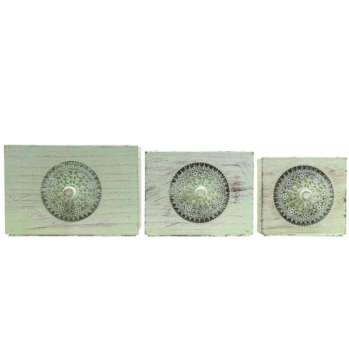 Cassetta per piante cassetto decorativo shabby verde 15-23cm set di 3