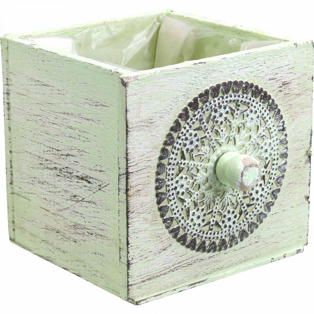Boîte à plantes tiroir décoratif shabby vert 15-23cm lot de 3