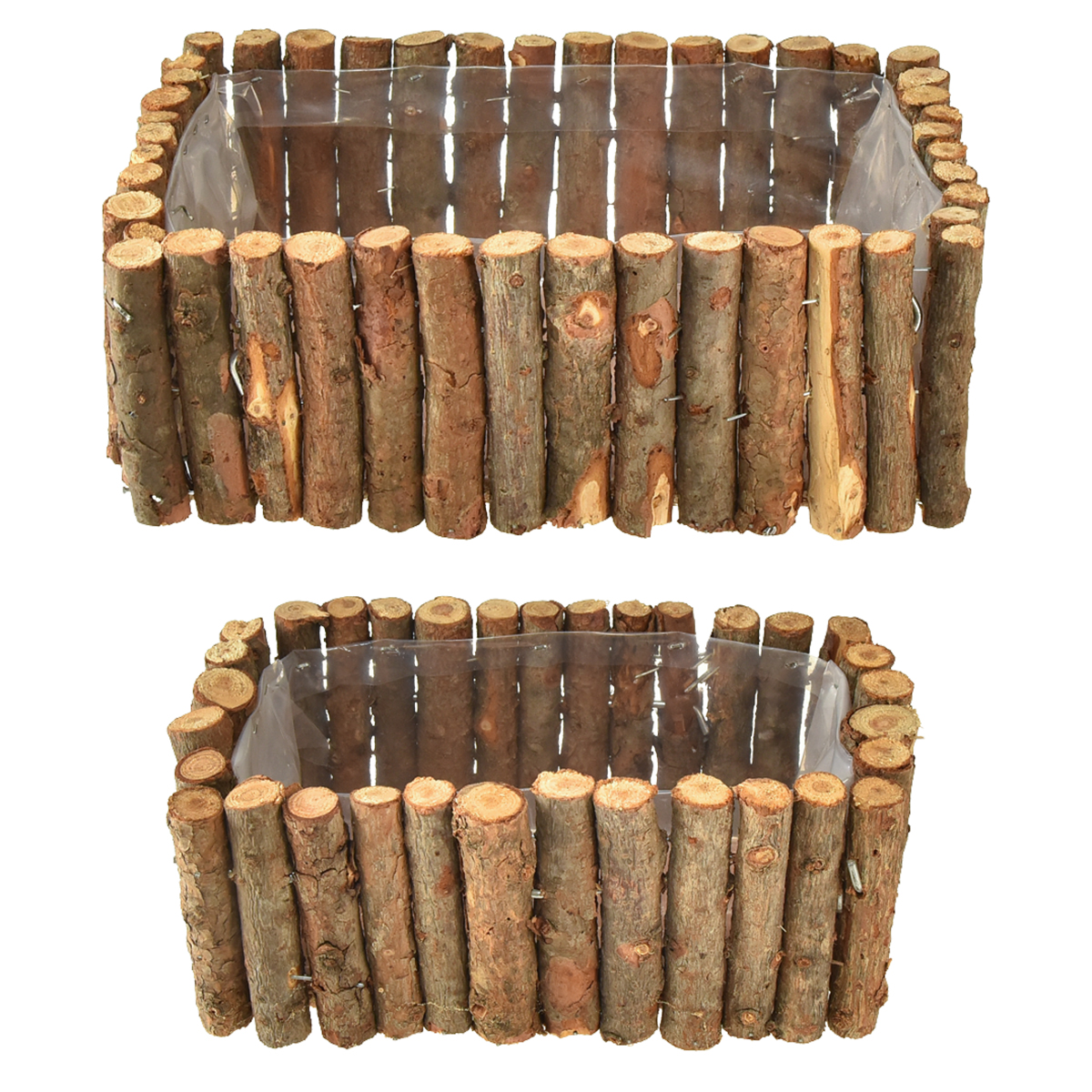 ✔ Jardinière en bois avec écorce naturelle en lot de 2