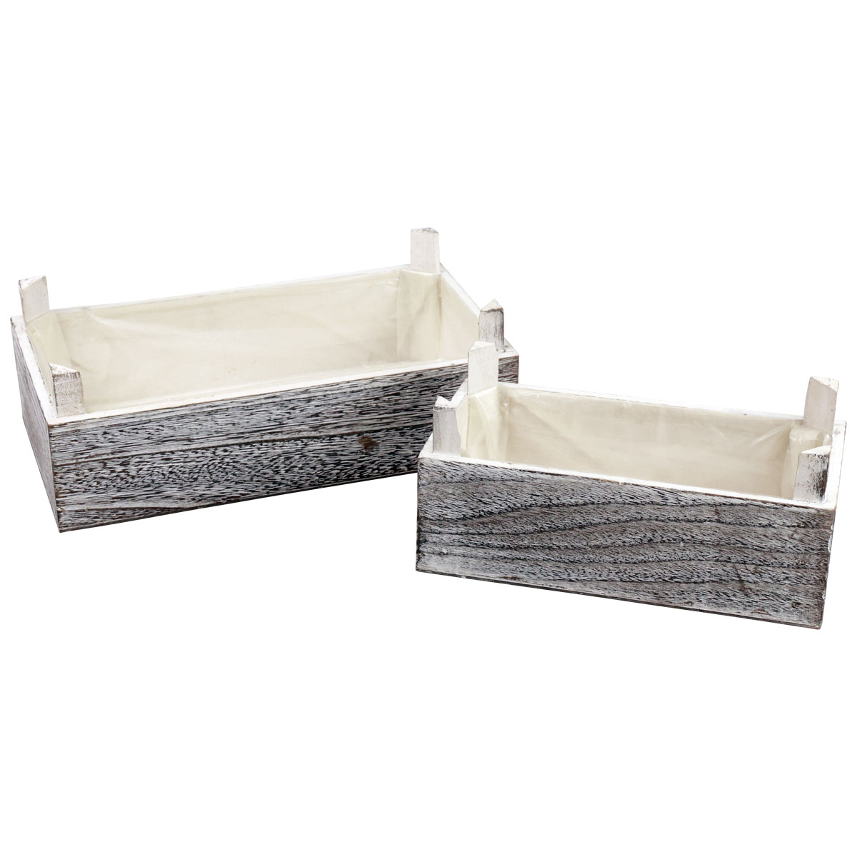 Jardinière rectangulaire en bois blanchi 32x17/25x13cm lot de 2