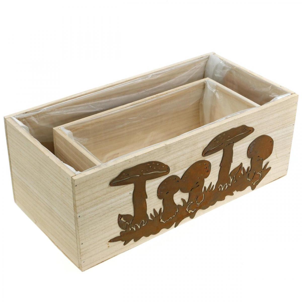 Set di fioriere, scatole di legno con funghi, patina decorazione autunnale L40/30cm set di 2