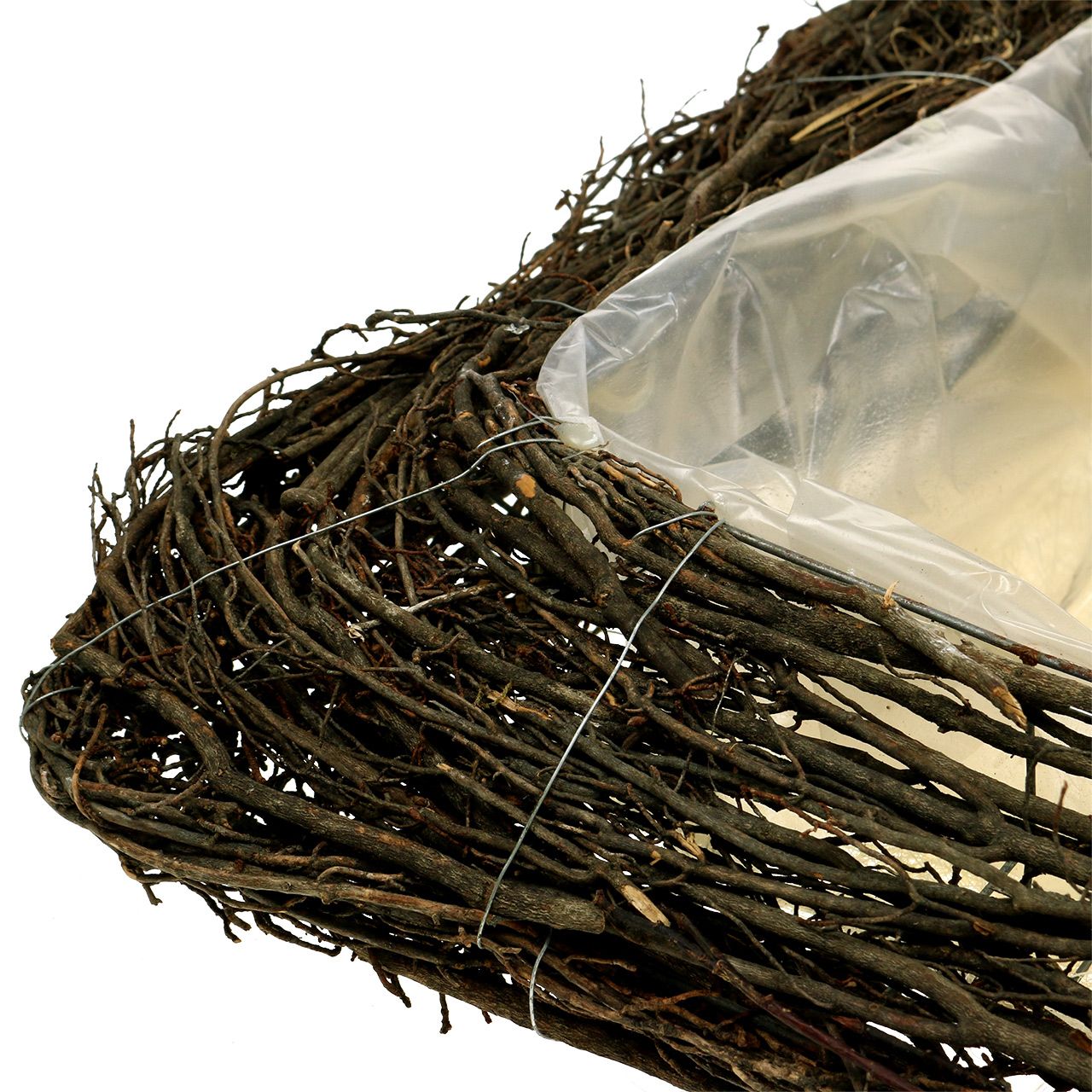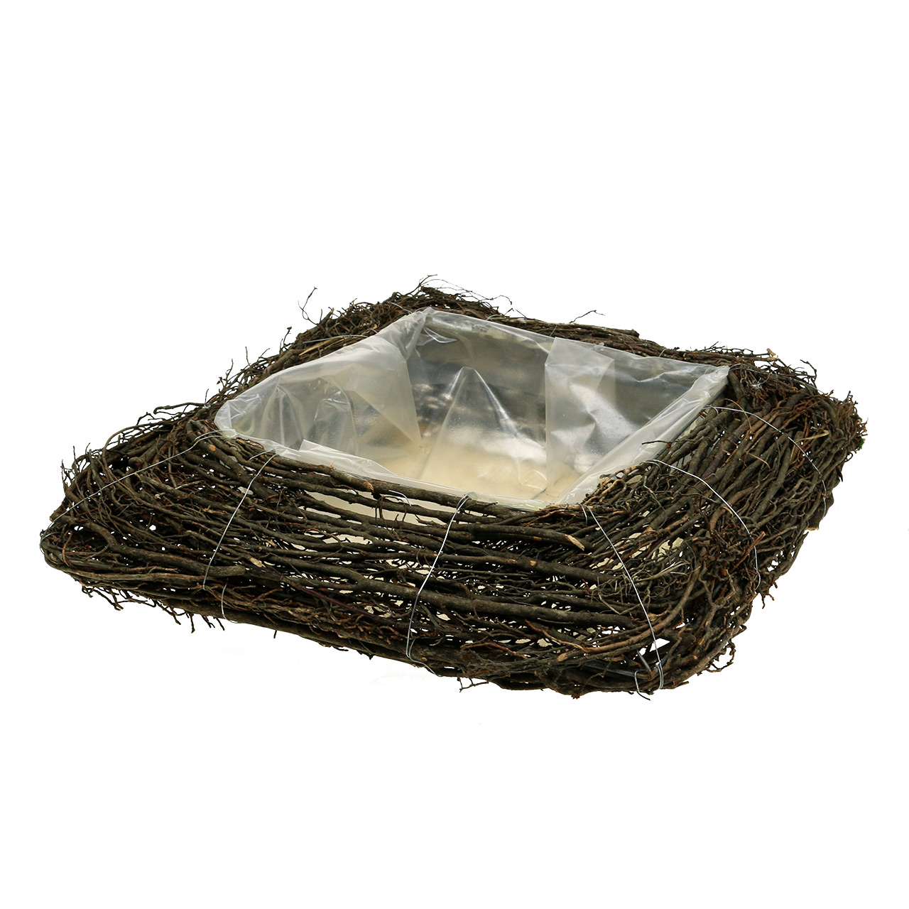 Produktname: Deko Pflanzkissen Zweige Natur 40x40 cm - Ideal für Trauerfloristik und Grabgestecke, Natürliches Rattandesign
