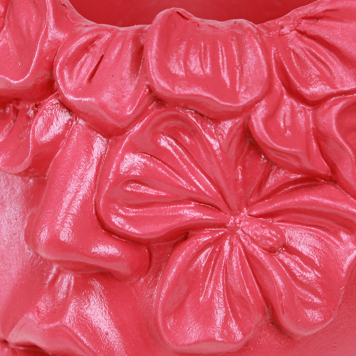 Dans le langage des fleurs, la couleur rose intense de la tête de la plante représente l’espièglerie, la jeunesse et l’énergie. Cette teinte apporte de la vivacité à n’importe quelle pièce et peut favoriser la joie et la créativité. La polyrésine en tant que matériau confère à la jardinière une texture durable et facile d'entretien, idéale pour les décorateurs et les amateurs d'artisanat qui recherchent une décoration flexible mais durable. Le rose peut être associé à des tons pastel doux ou à des couleurs contrastées comme le vert ou le blanc pour souligner l'atmosphère souhaitée.