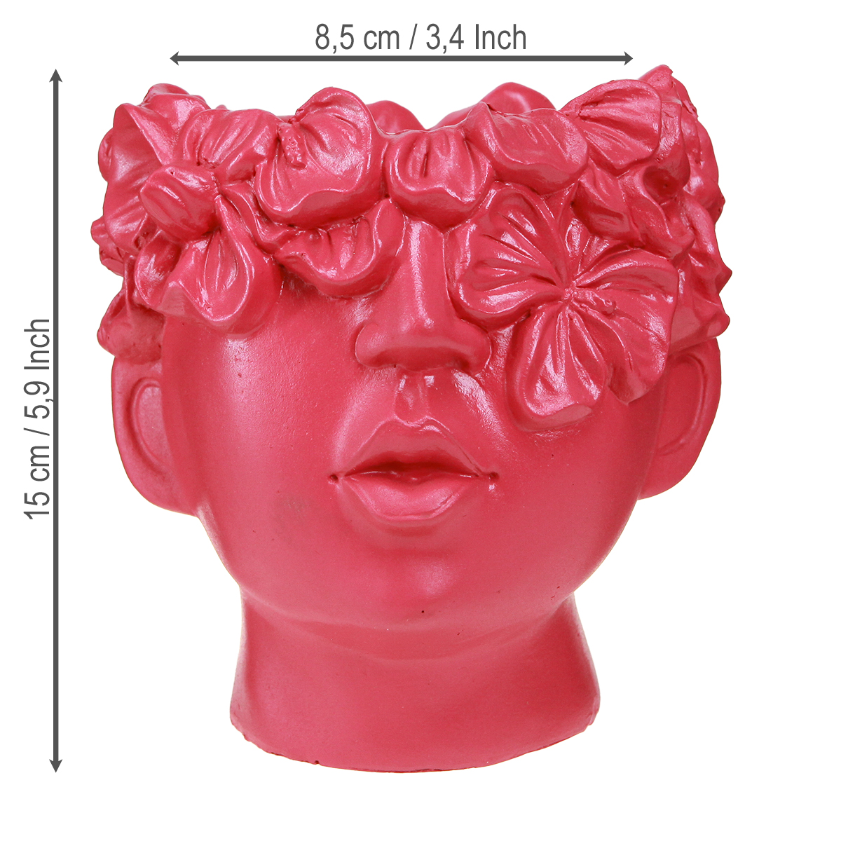 Pflanzkopf Polyresin Büste Übertopf Pink 13,5×13×14cm