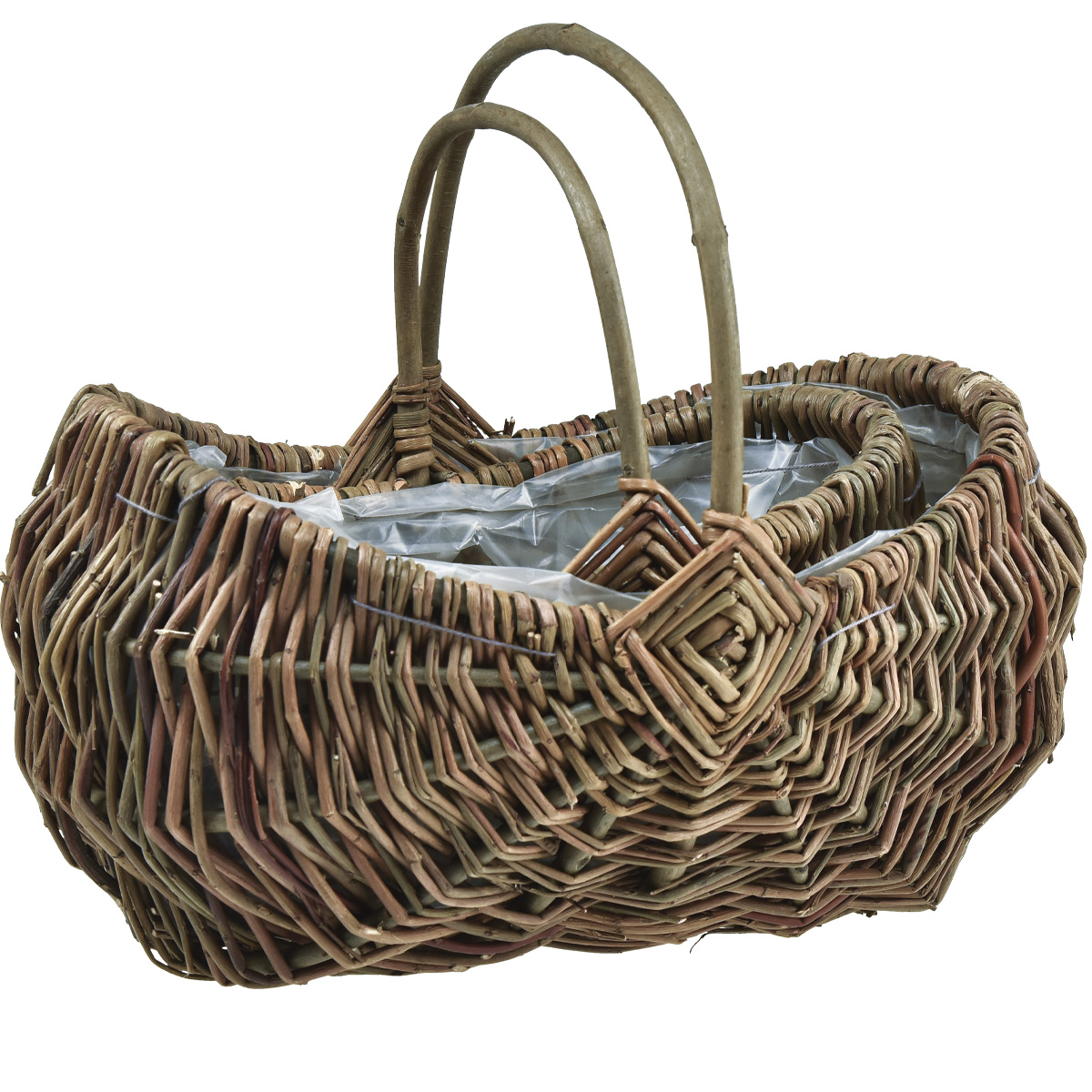 Pflanzkorb Korb mit Henkel oval 35×25/25×18cm 2er-Set