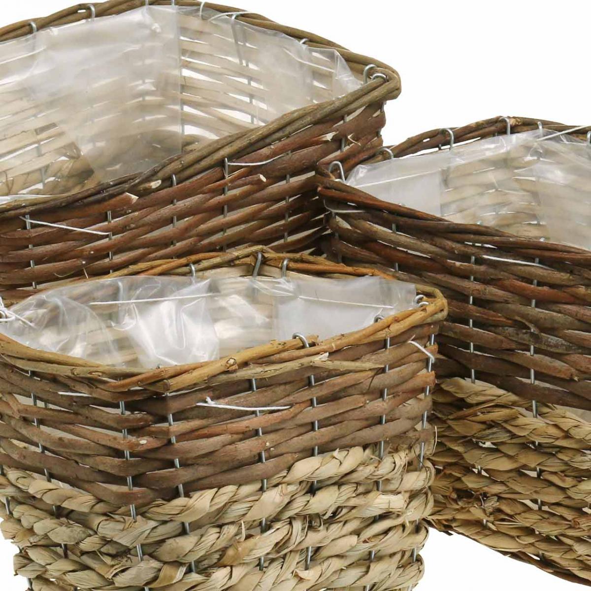 Pflanzkorb, Naturgefäß zum Bepflanzen, Blumenschale eckig Natur L29,5/26/23cm H21/19/16cm 3er-Set