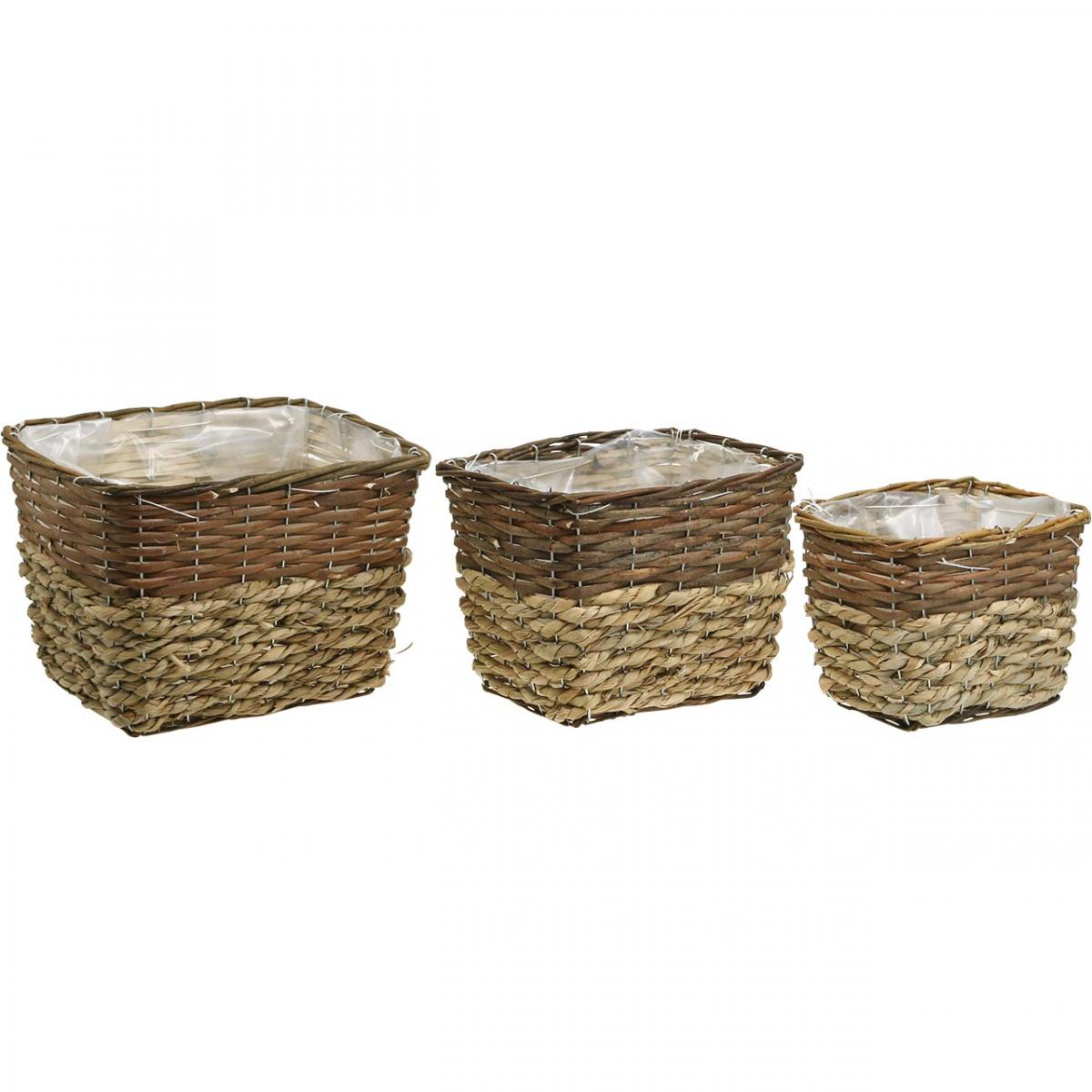 Cesto per piante, contenitore naturale per piantare, fioriera quadrata naturale L29,5/26/23 cm H21/19/16 cm set di 3