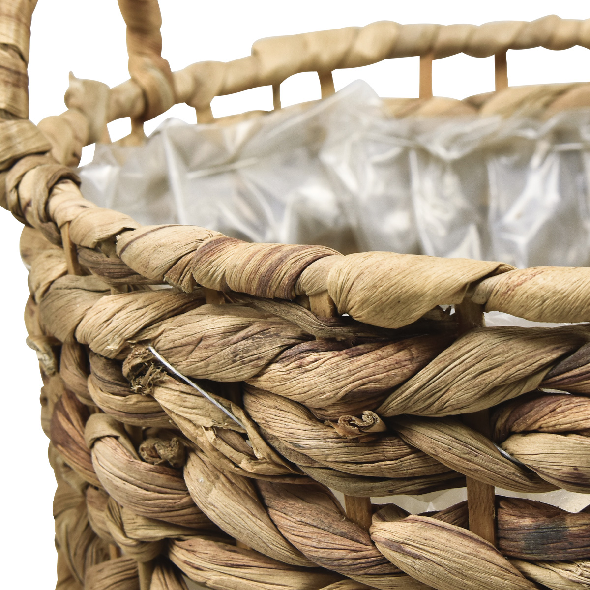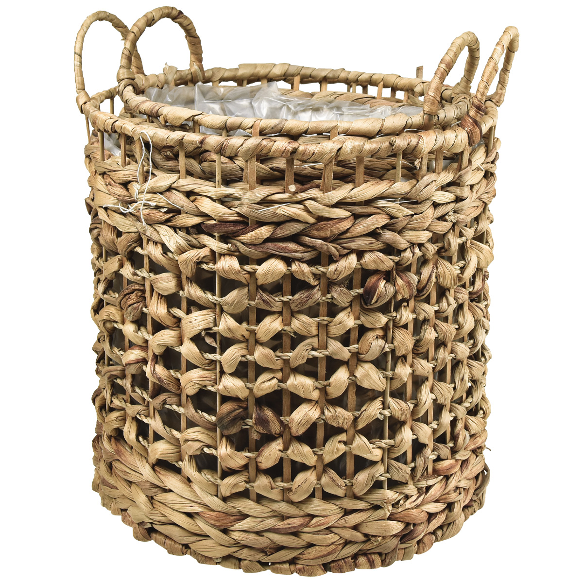 Un colpo d'occhio intrecciato con un tocco marittimo: il cestino in alga marina con manici è perfetto come cestino per piante naturali, come fioriera o come accessorio.Il cesto in giacinto d'acqua è intrecciato in modo elaborato e decorativo e ha un motivo traforato al centro. L'interno del cestino di vimini è rivestito con pellicola di plastica. Ciò significa che può fungere da fioriera o fioriera!
