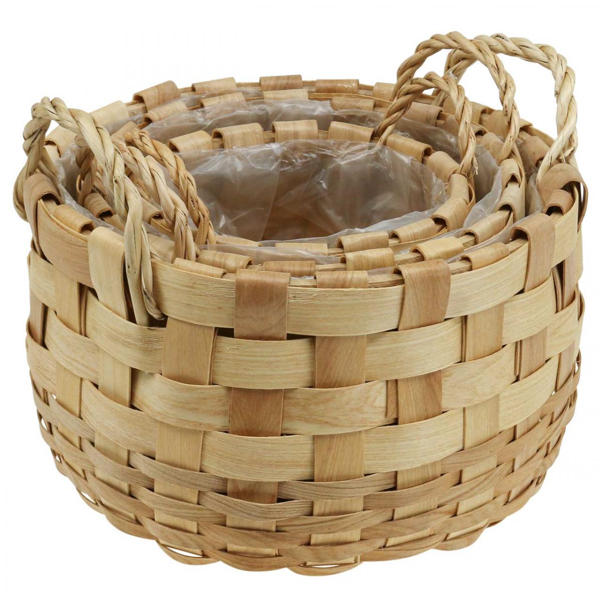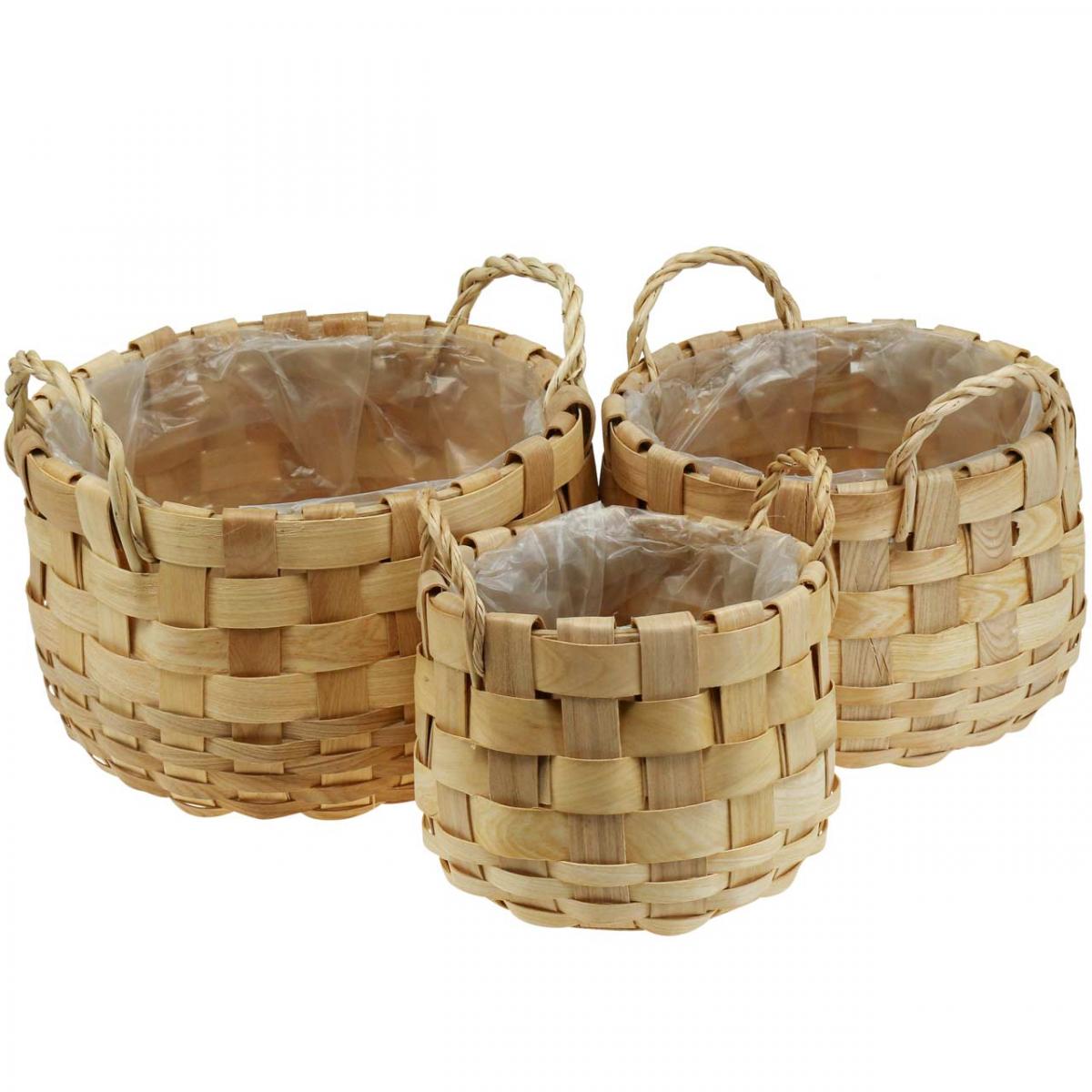 Set di 3 cestini per piante naturali, cesto per fiori, fioriera, cestino decorativo boho, intrecciato, Ø18/23/29 cm
