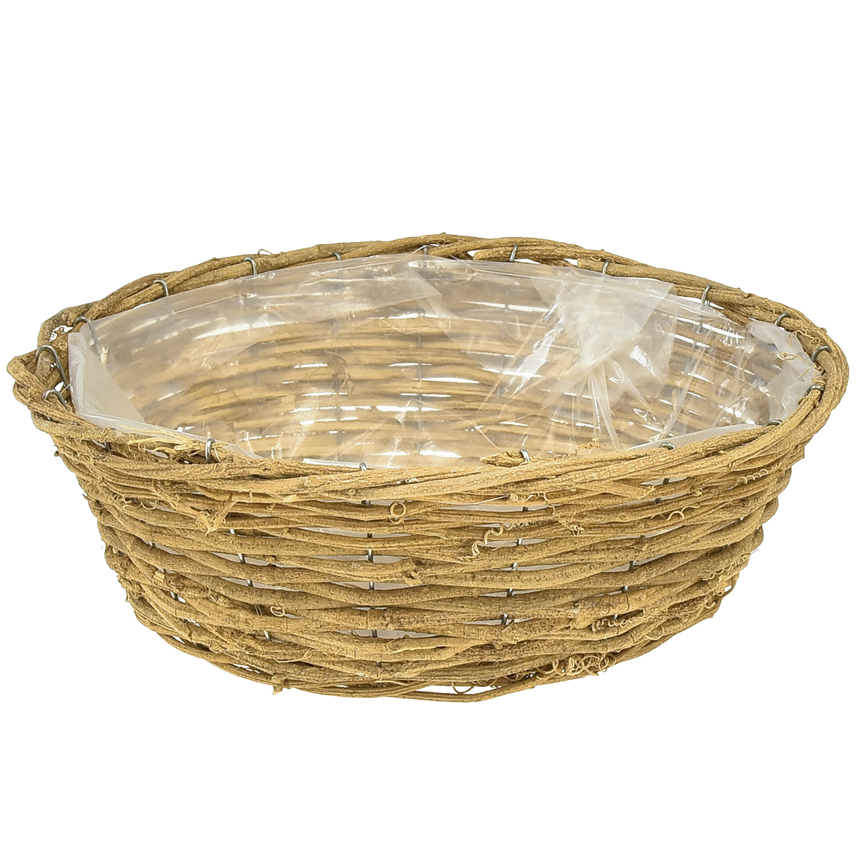 Die runde Pflanzschale ist nicht nur eine hervorragende Blumenschale, sondern eignet sich auch perfekt als Grundlage für kreative Geschenkarrangements. Die robuste Gitterschale aus Metall als Basis sorgt für die notwendige Stabilität, während die Rebenkringel an der Oberfläche der Schale das natürliche und rustikale Design unterstreichen.