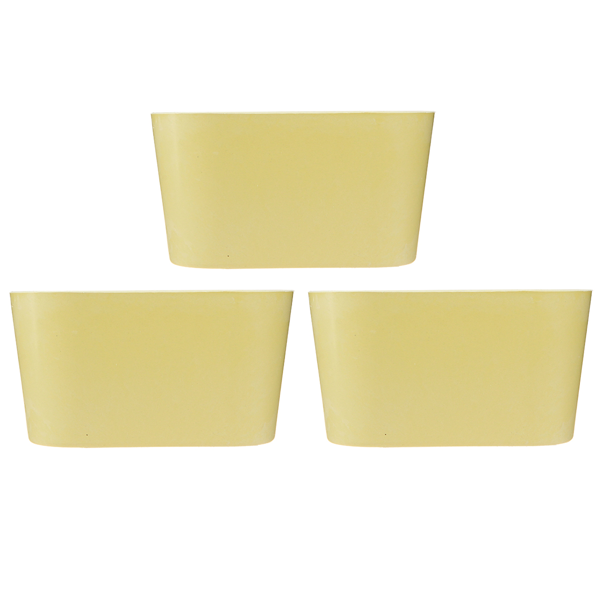 Lot de 3 pots de fleurs décoratifs ovales en plastique jaune, dimensions 20 x 10 x 11 cm