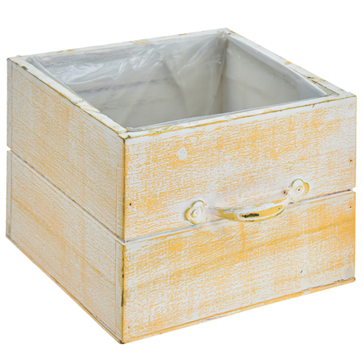 Cassetto per piante con manico in legno bianco arancio 12/15 cm set da 2