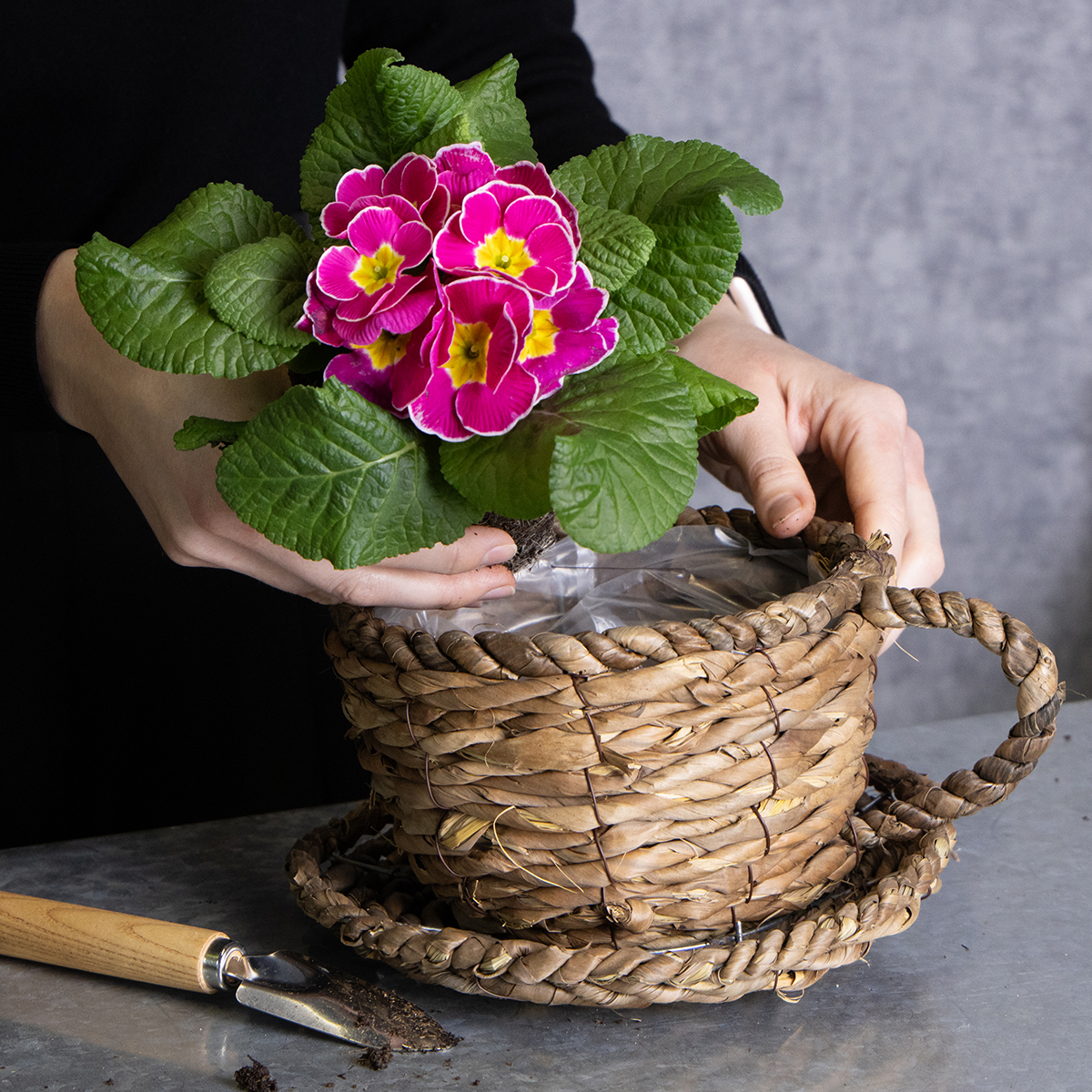 Geflochtene Pflanztasse mit Unterteller: ein rustikales Highlight für Ihre Pflanzen