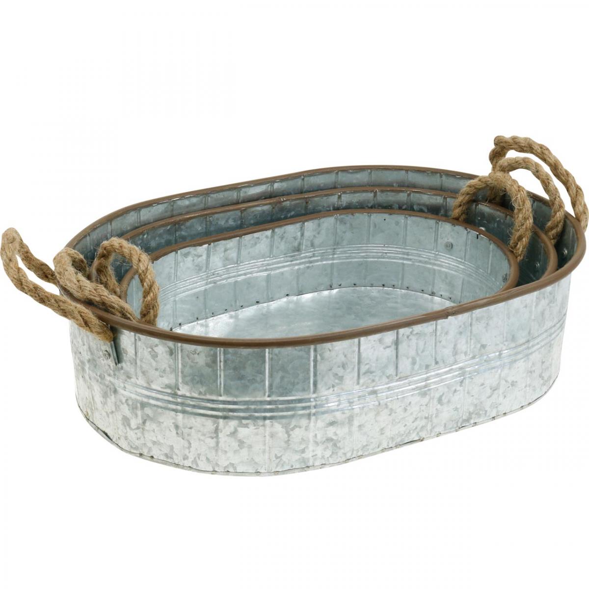 Pflanztopf mit Henkeln, Kräuterschale, Gesteckunterlage Silbern, Braun L39/35,5/32cm H10/8,5/7cm 3er-Set