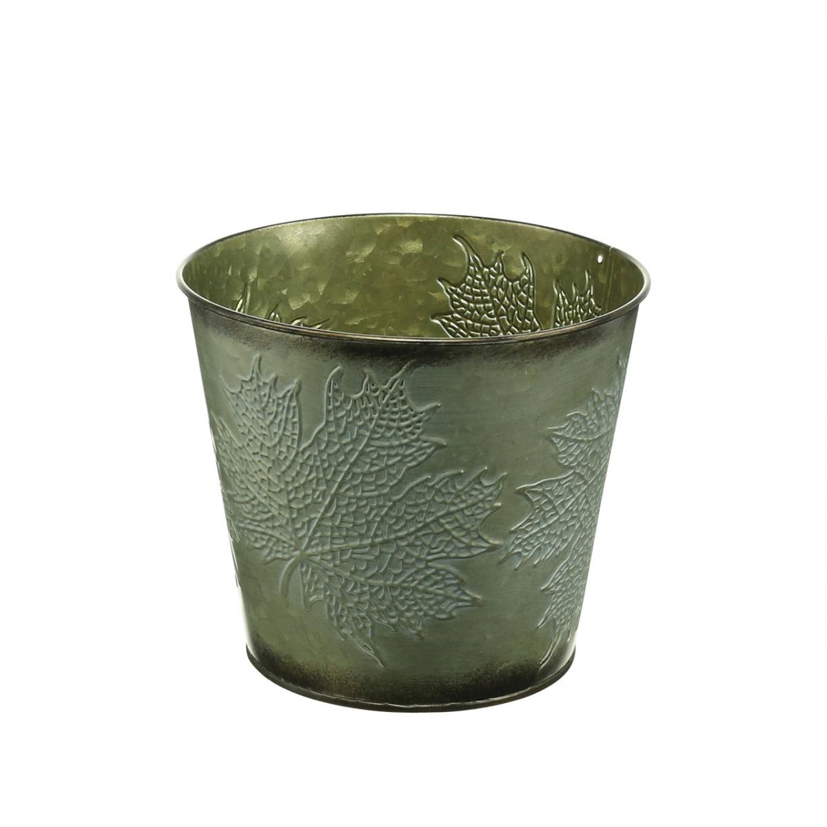 Cache-pot avec décoration d'automne, décoration en métal, jardinière d'automne verte Ø18.5cm H17cm