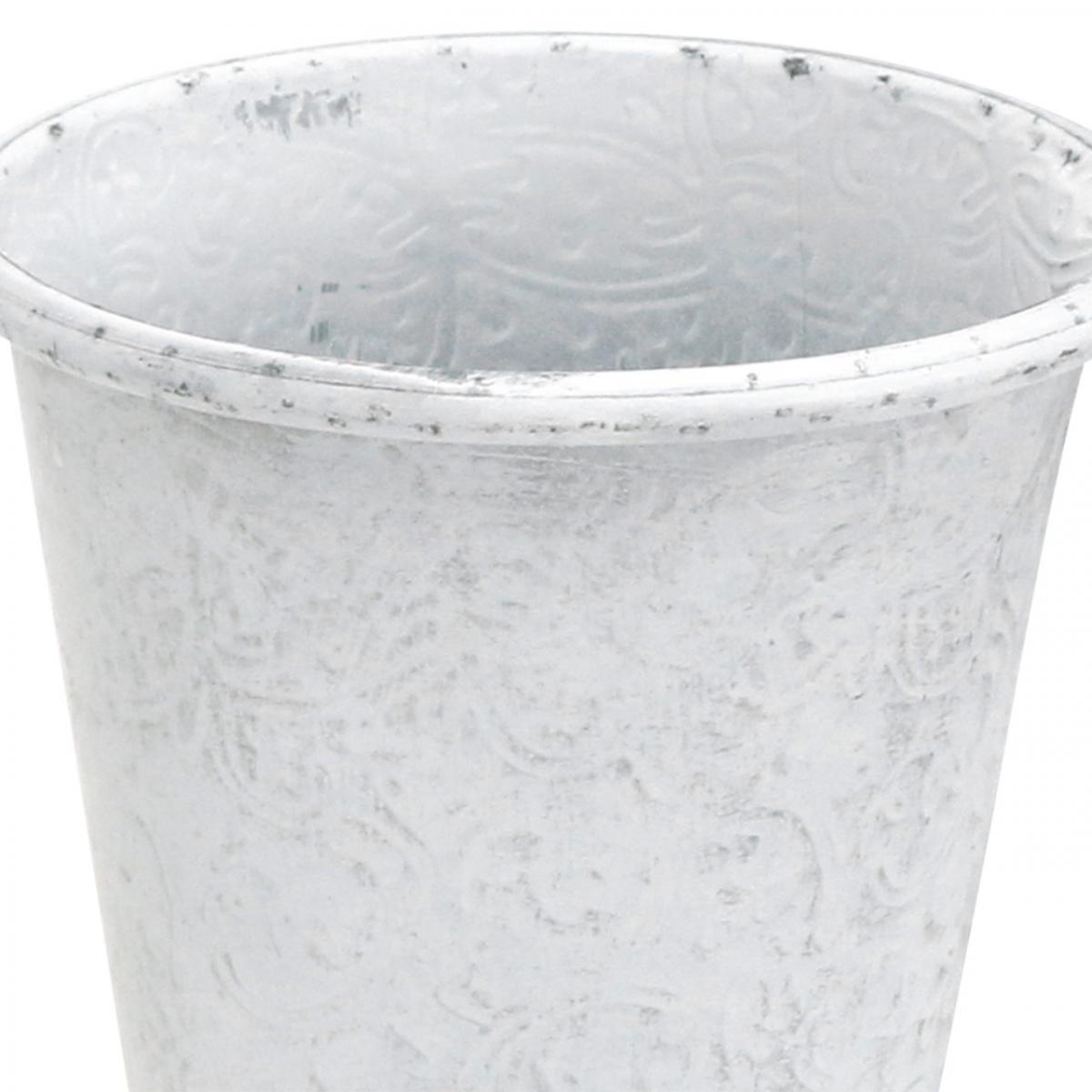 Portavasi con ornamenti, fioriera, vaso in metallo bianco Ø15,5 cm H14,5 cm