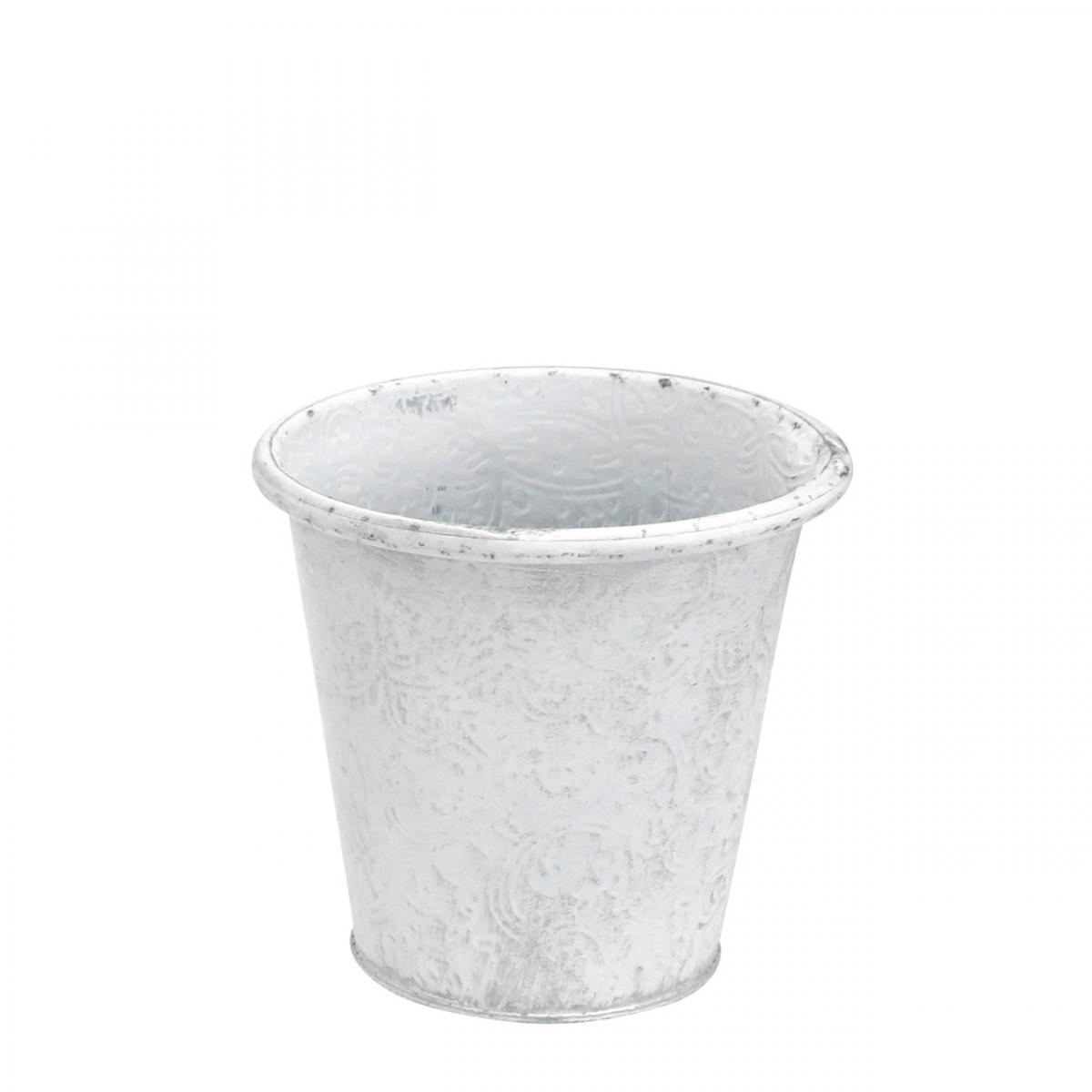 Cache-pot avec ornements, jardinière, récipient en métal blanc Ø15,5cm H14,5cm