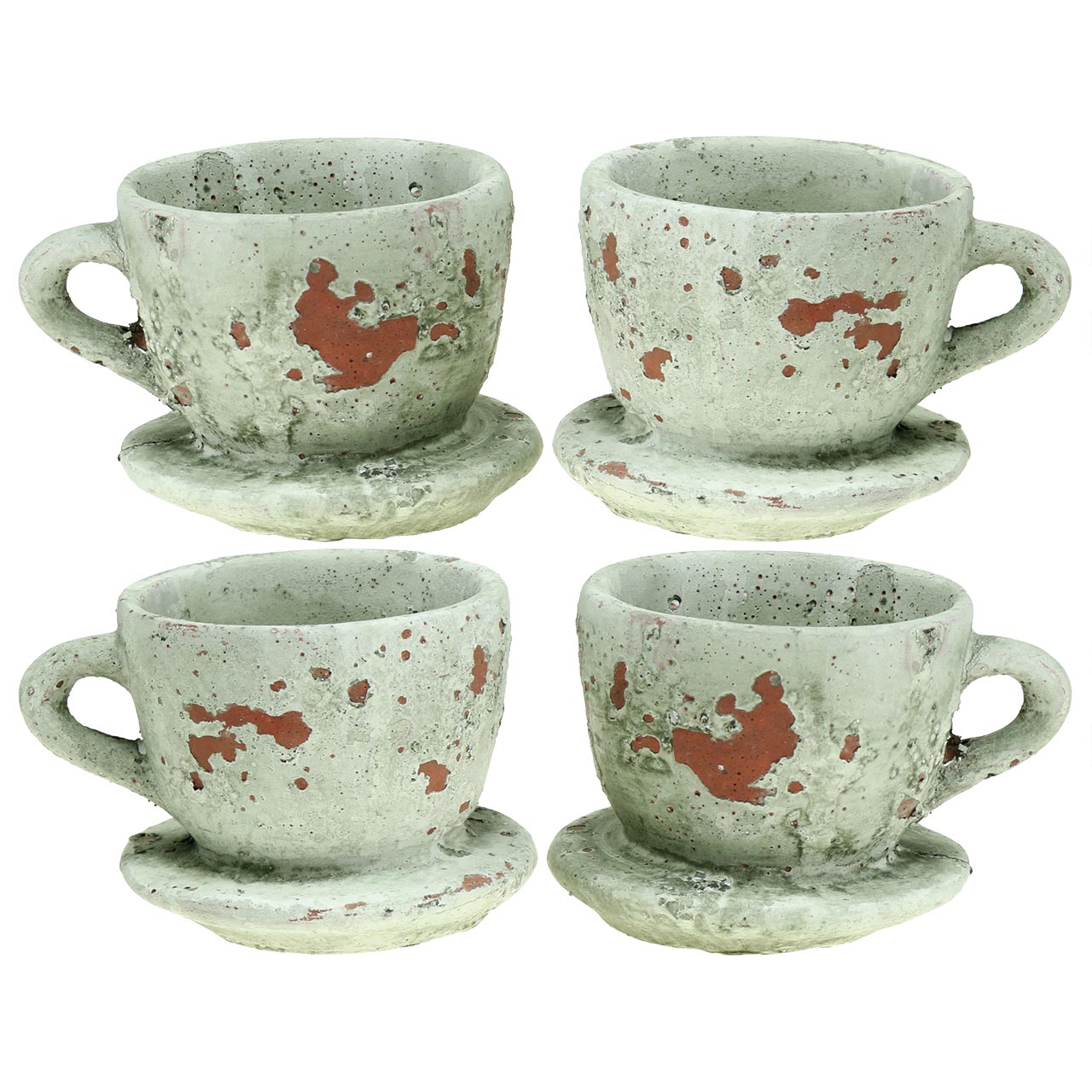 Pflanztopf Übertopf Tasse mit Unterteller Vintage Grau, Natur Ton Ø8cm H6,5cm 4 St