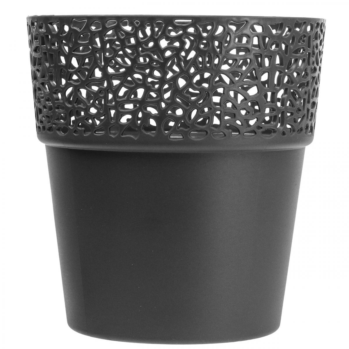 Jardinière pot de fleur plastique anthracite Ø14.5cm H15.5cm