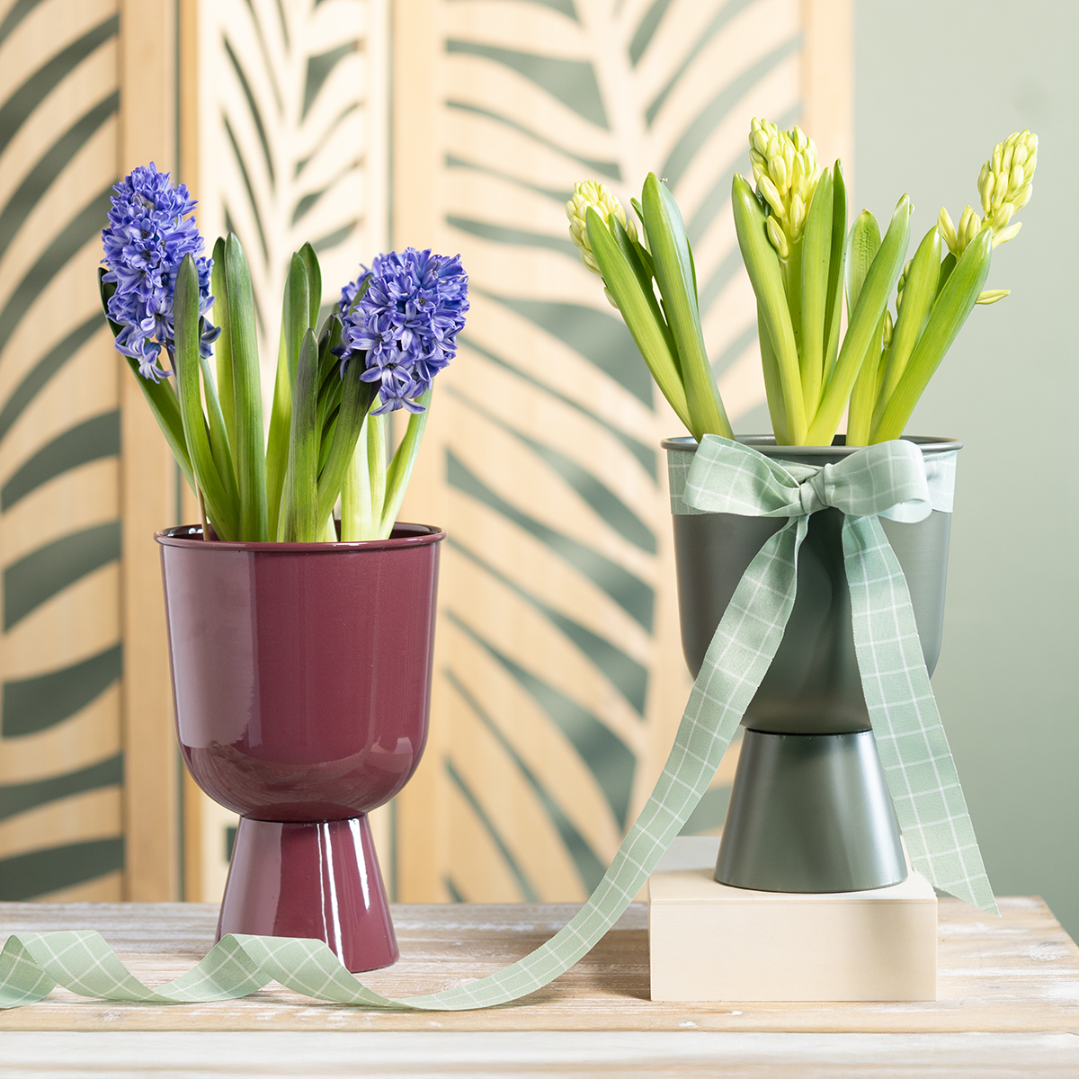 Cerchi un accessorio che aggiunga un tocco di eleganza e modernità alla tua casa? Il nostro vaso in metallo a forma di calice è la scelta perfetta per creare un tocco decorativo. Con la sua armoniosa combinazione di linee pulite e un colore contemporaneo in un delicato verde, si integra perfettamente in qualsiasi arredamento. Che sia sul tavolo da pranzo, sul davanzale o come parte di un'elaborata composizione floreale in soggiorno, questo vaso colpisce per la sua versatilità e il suo stile.