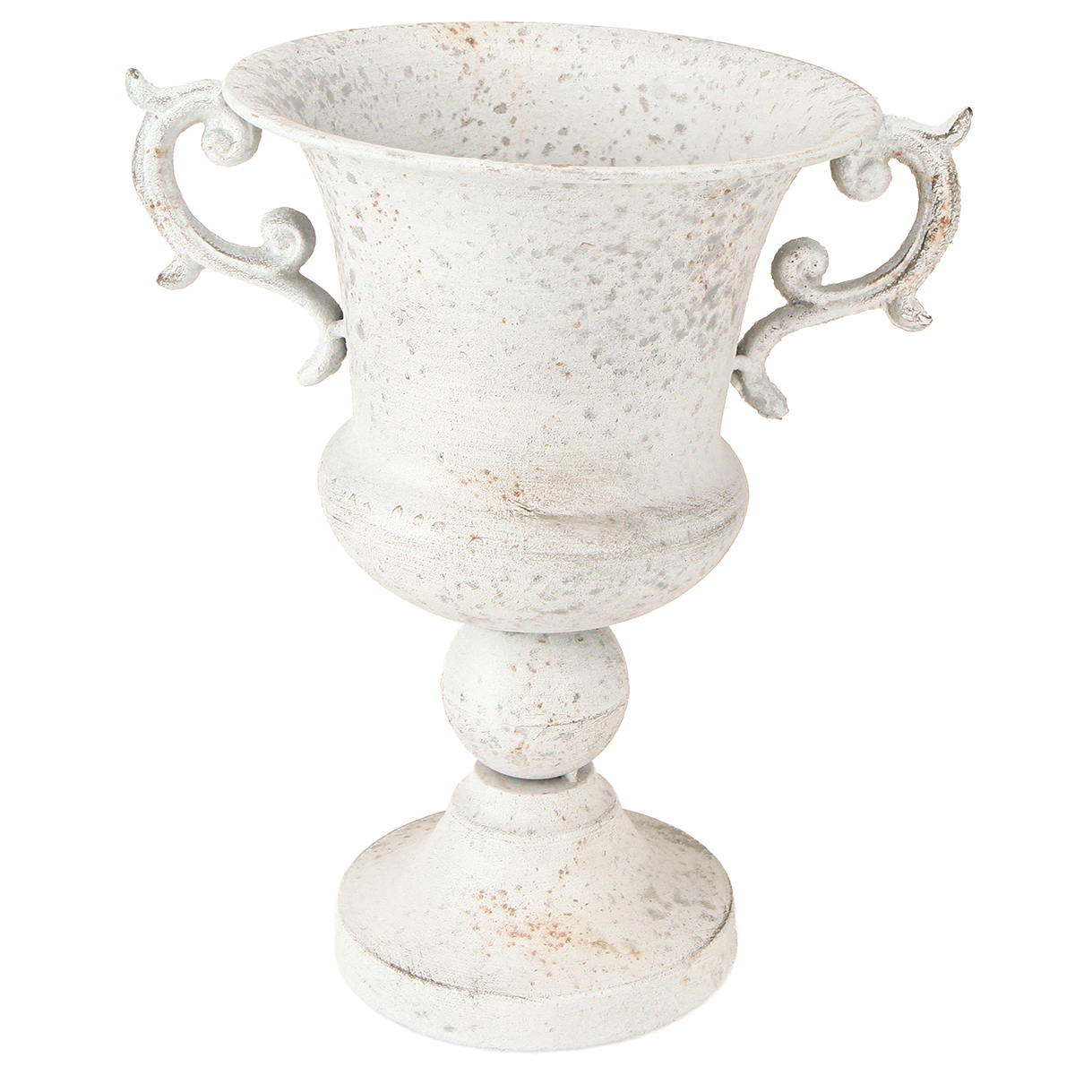 Pokal mit Henkel Metall Deko Übertopf Grau Weiß H29,5cm