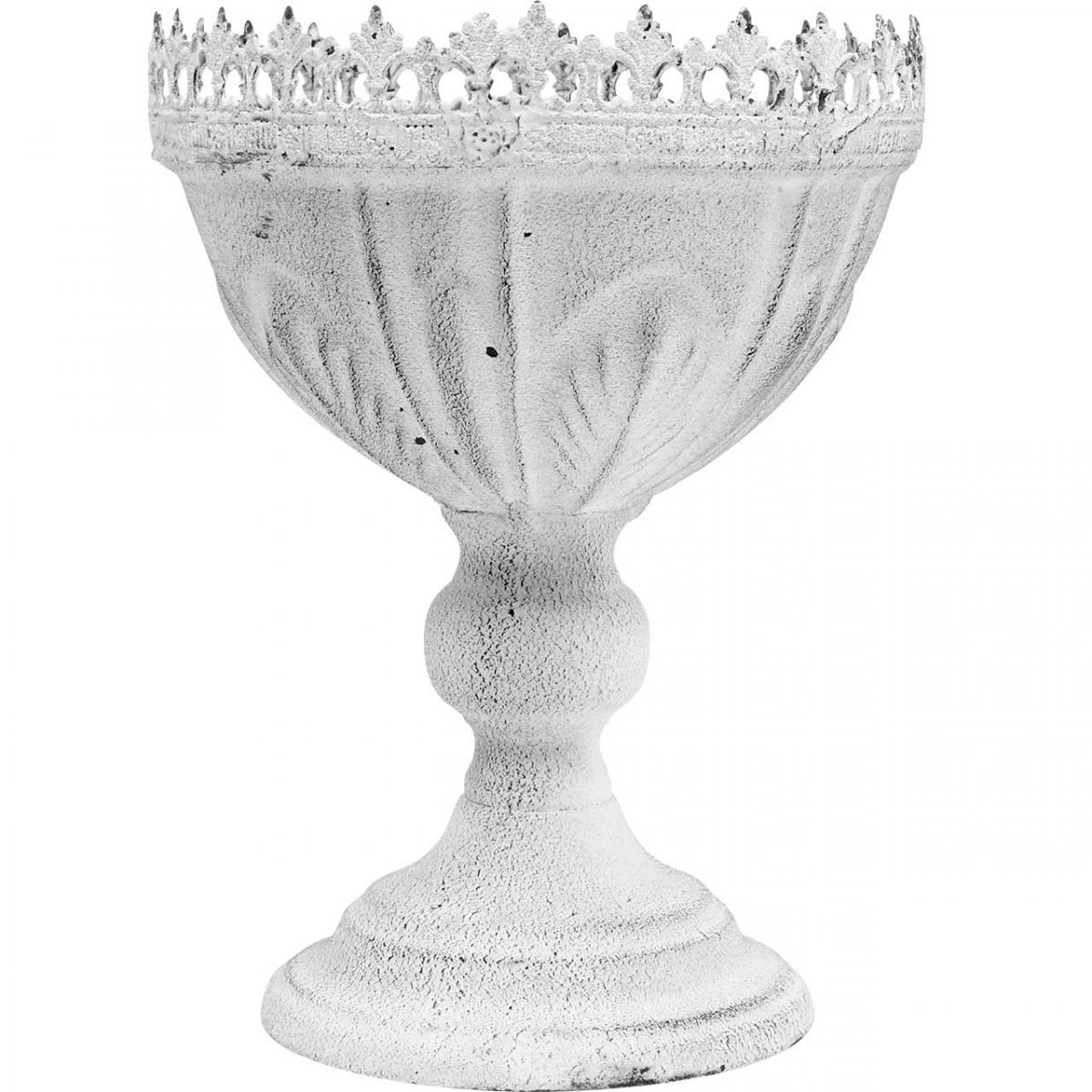 Dieser Pokal von Viana macht bei jeder Feierlichkeit eine gute Figur. Weiß gewaschen, mit markanten Prägungen und filigran gearbeitetem Kronenrand kommt die Metallschale beispielsweise bei Hochzeiten gut zur Geltung.Die Öffnung der Pokal-Schale misst im Durchmesser etwa 15 cm. Im trendigen Shabby-Chic-Stil gehalten, fühlt sich der Pokal angenehm rau an. Fuß und Stand sind sorgsam verarbeitet. Rundherum um die Schale werden Sie Prägungen mit Blütenblättern entdecken. Ein direkter Blick in die Metallschale offenbart das gesamte Blumen-Motiv.