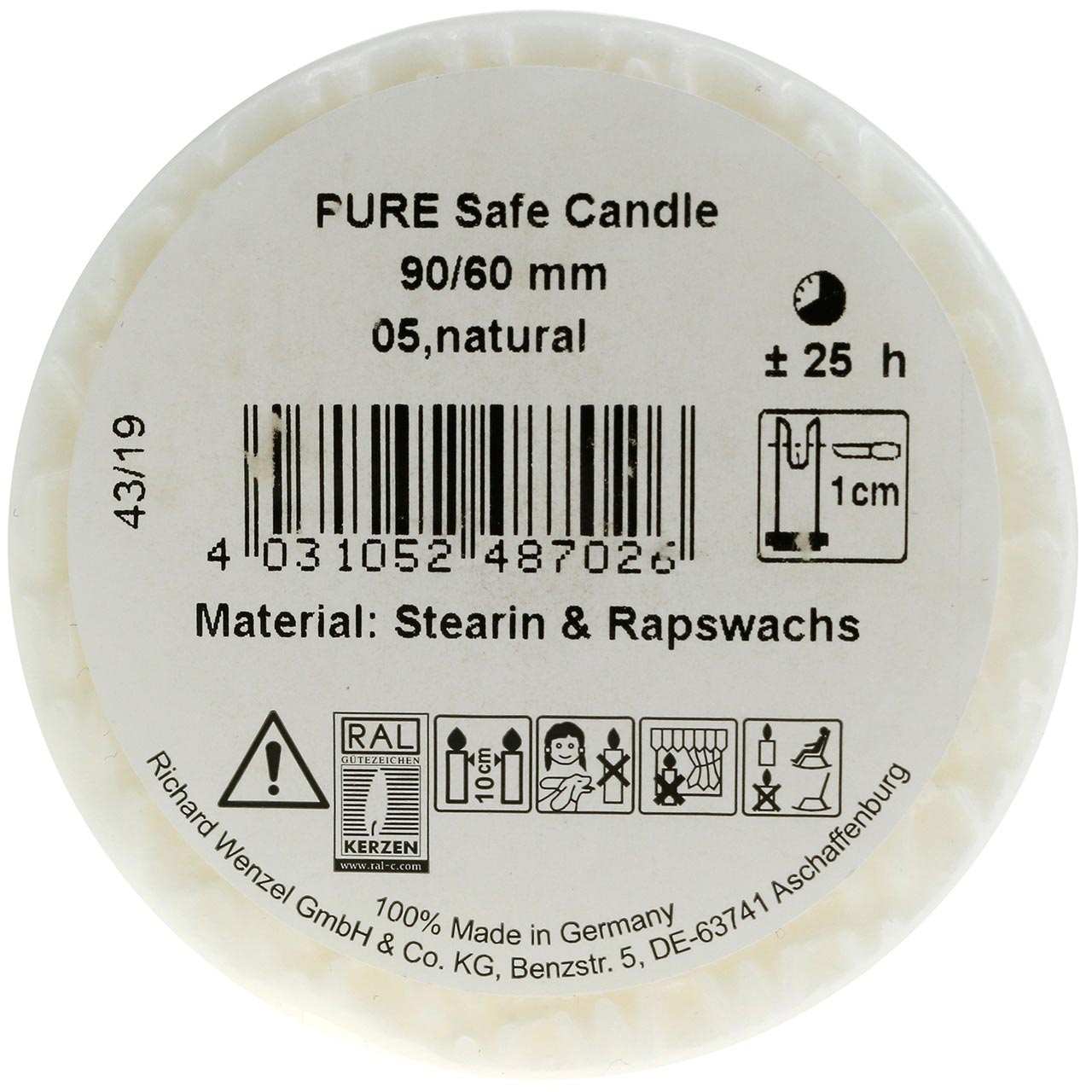 PURE Nature Safe Candle candela stearina, cera di colza 90/60mm bianco 1 pz