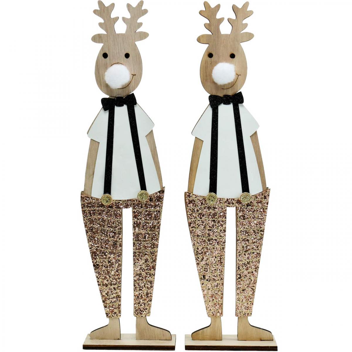 Figura decorativa in legno di renna Natale da mettere 12×6,5 cm H45 cm 2 pezzi
