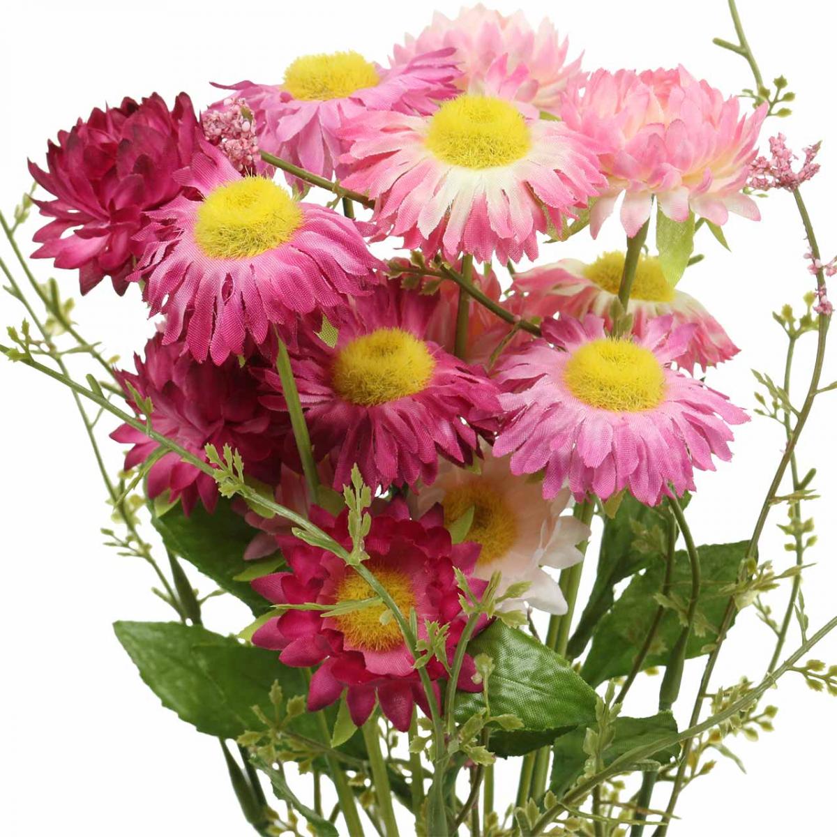 Rhodanthe Rosa - Fiori di seta rosa artificiali, mazzo di fiori di paglia, fiori decorativi da 46 cm