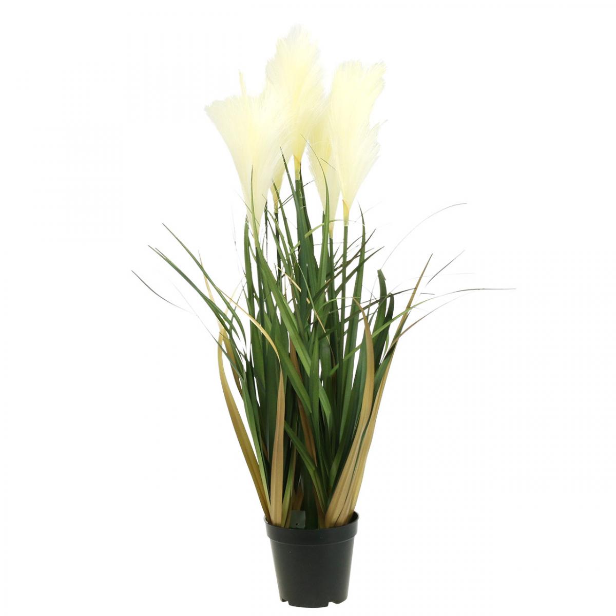 Riedgras im Topf Künstliche Topfpflanze Creme, Grün 79cm