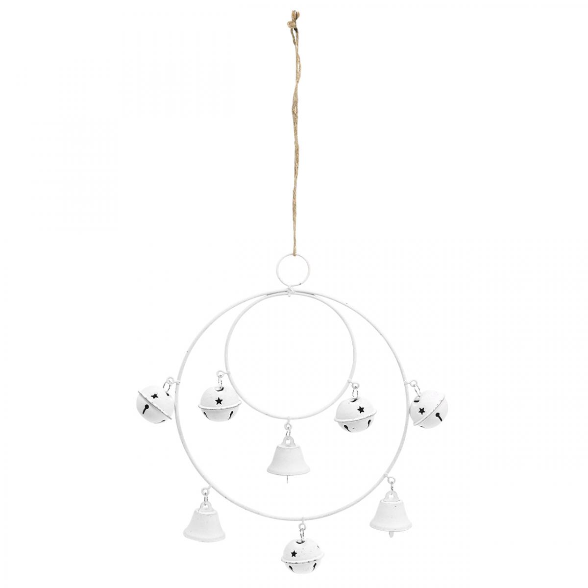 Produktname: Ring mit Glöckchen, Adventsdeko, Schellenkranz, Metalldeko zum Hängen Weiß H22,5cm B21,5cm
