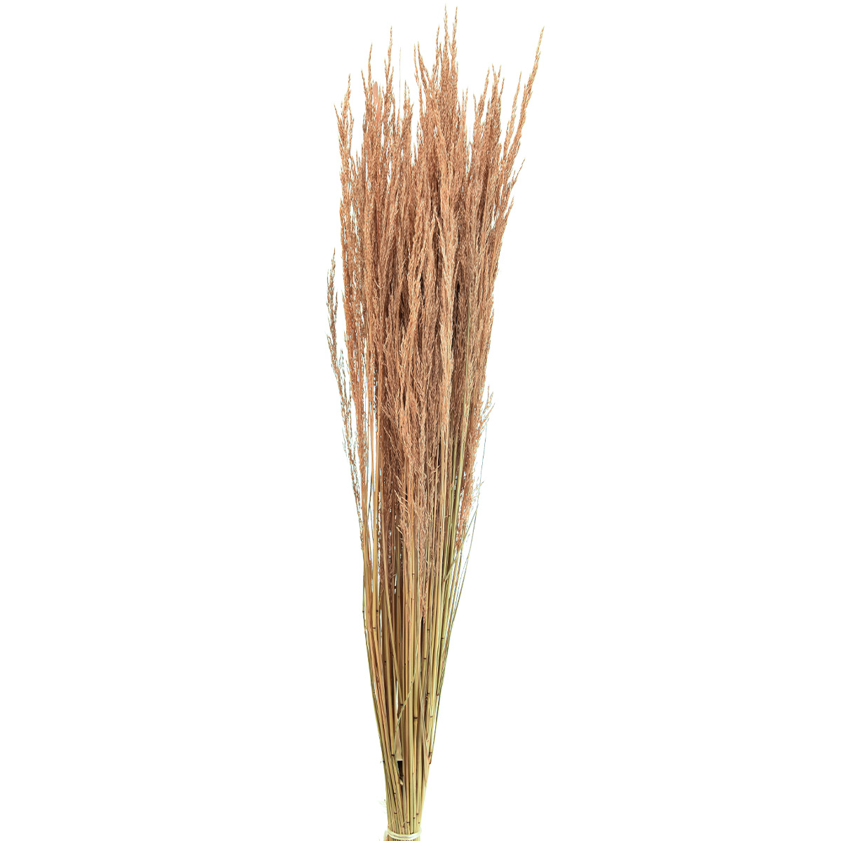 Ob zum Kranz gewunden, als Bund in einer Vase aufgestellt, in Bouquets eingebunden oder für Gestecke zu jedem Anlass – der Trockenblumenstrauß aus Straußgras in Rotbraun lässt sich äußerst vielfältig in der Trockenblumen-Floristik einsetzen.